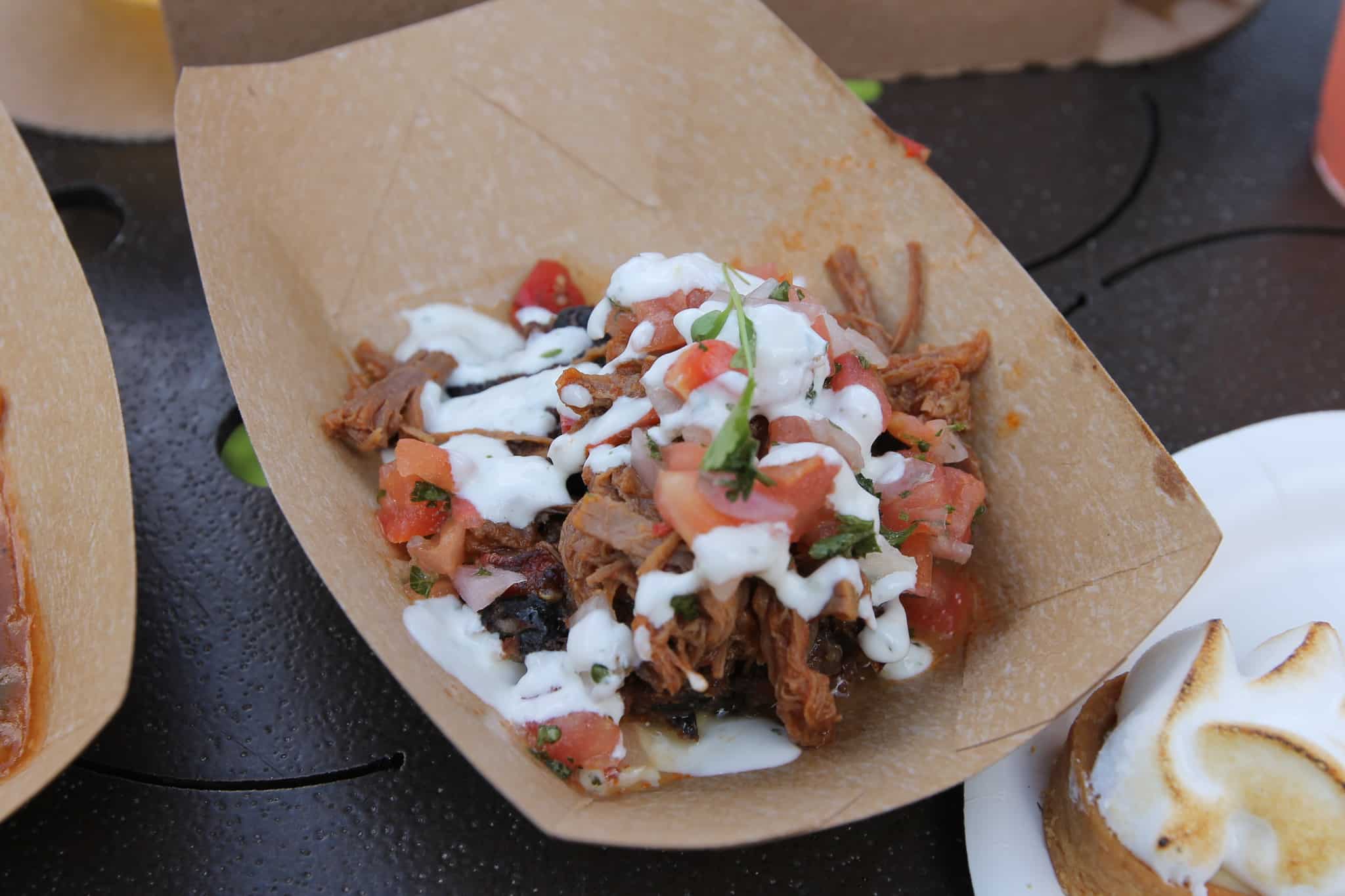 Tender meat with a nice kick that’s evened out by the cilantro lime sour cream. The tomatoes and black bean cake round out the dish bringing a freshness and flavor profile we expect from Miami. It’s a very nice contrast to the other items available at the booth, you won’t be disappointed.