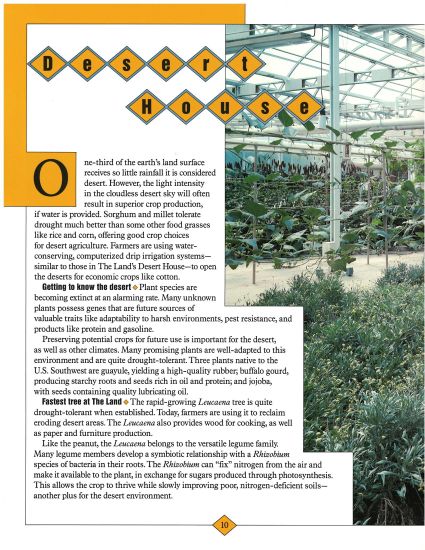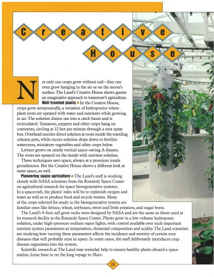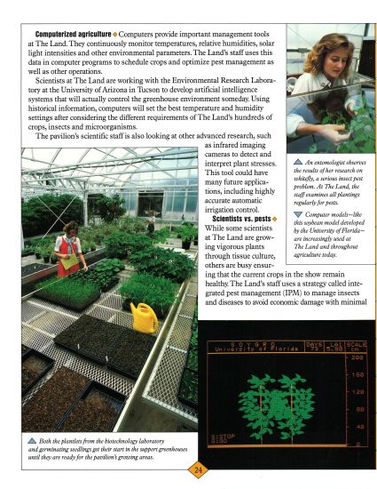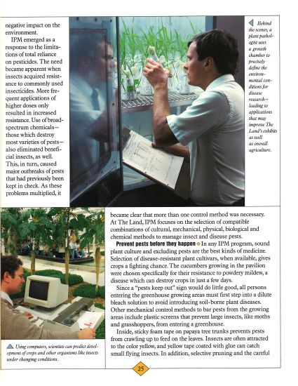 While that may be the end of the ride for guests, the tour in this booklet has just begun. There’s a deeper look into the technology and techniques used to farm in these greenhouses. This page discusses tissue culture, used to propagate asexual crops.
