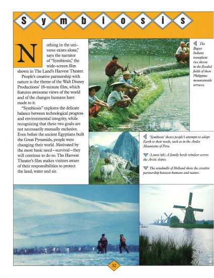 Or see the first EPCOT film to show how humans have changed the natural balance and what we’re doing to keep it in check, Symbiosis.