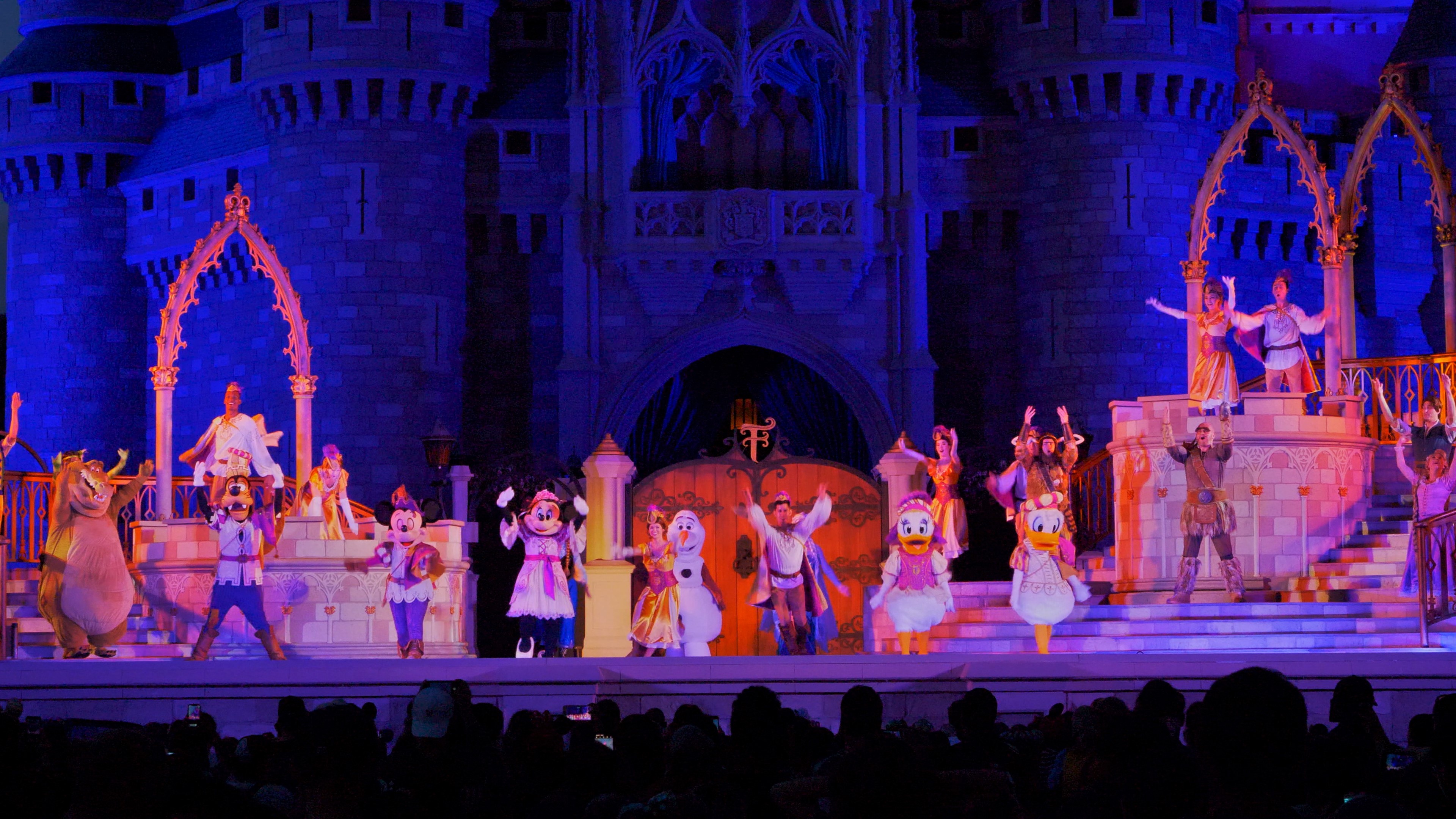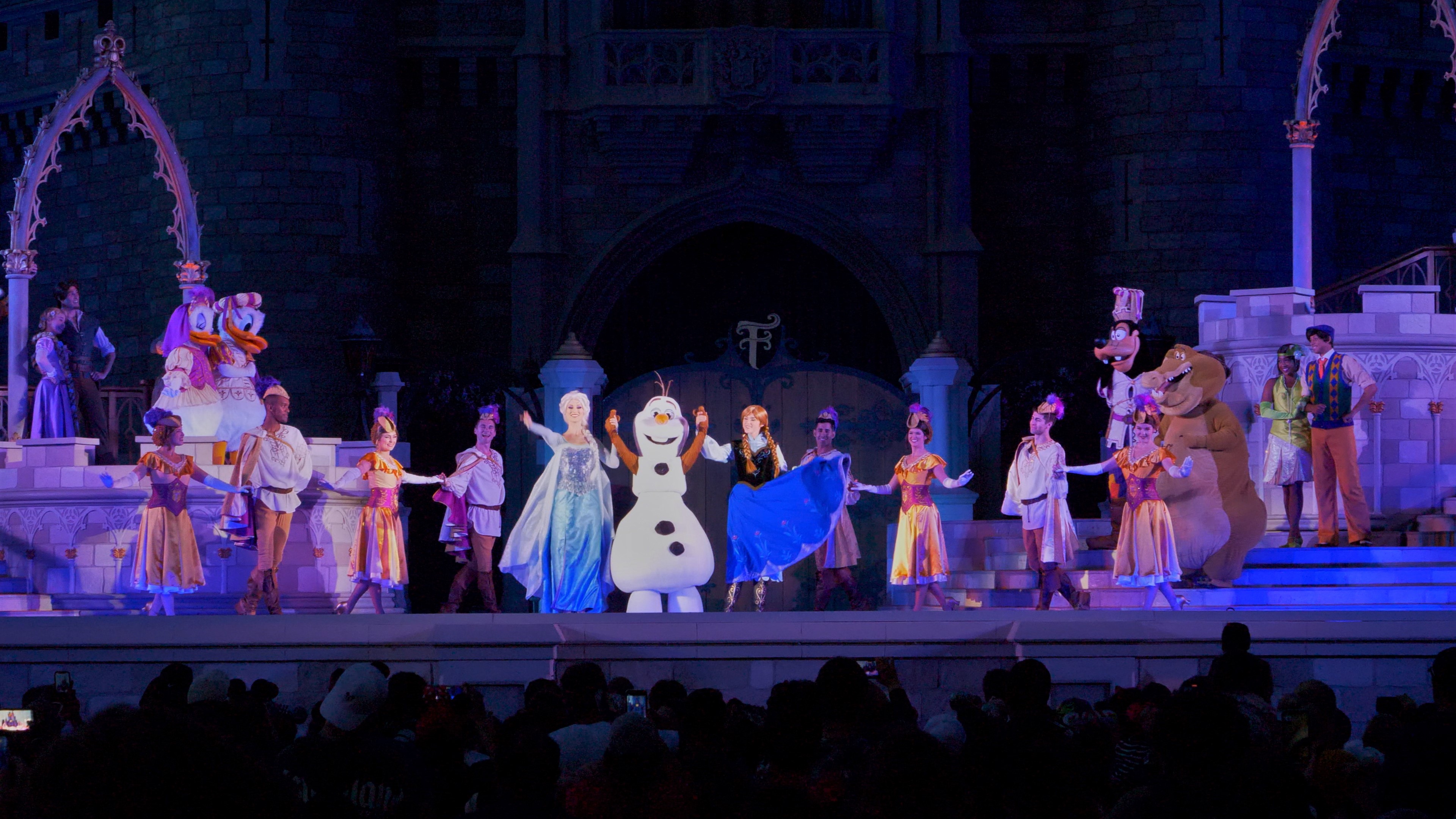 The rare nighttime look does make the show feel a little more special, much like the castle stage shows at the park’s after-hours holiday events.