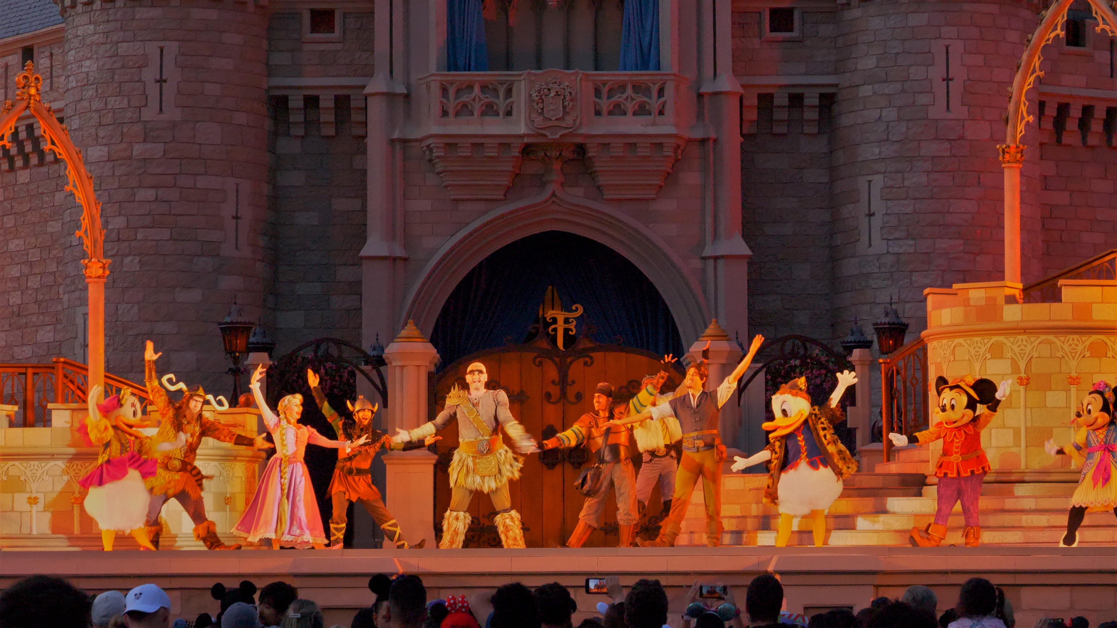 With the re-painting of Cinderella Castle having begun as part of its transformation, performances of Mickey’s Royal Friendship Faire have shifted to evenings at the Magic Kingdom, offering a rare nighttime backdrop for the stage show.