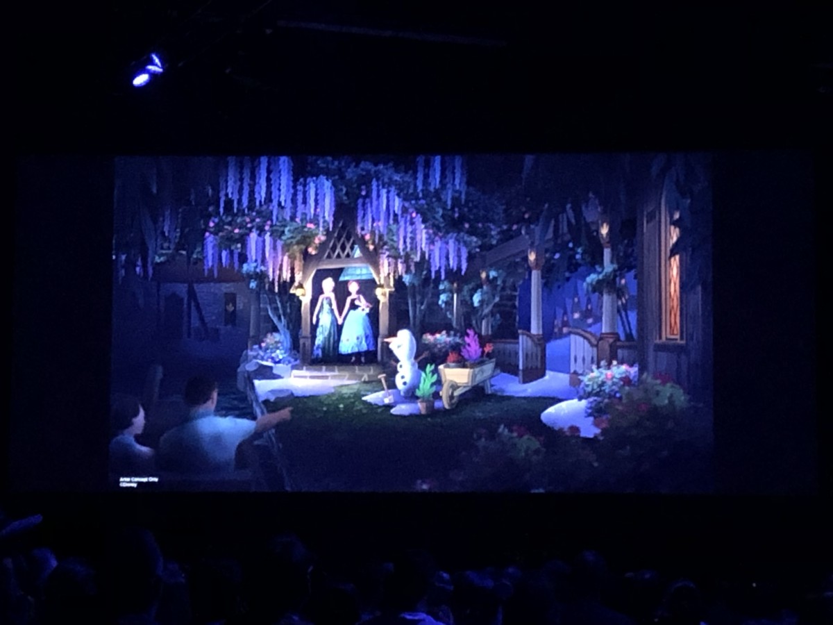 In November, we showed you the model of the “Frozen” themed land coming to Hong Kong Disneyland. In the model, we see the town of Arendelle with its many homes, tiny shops, and facades. Off in the back, you see the snow-topped mountains looming over the village.