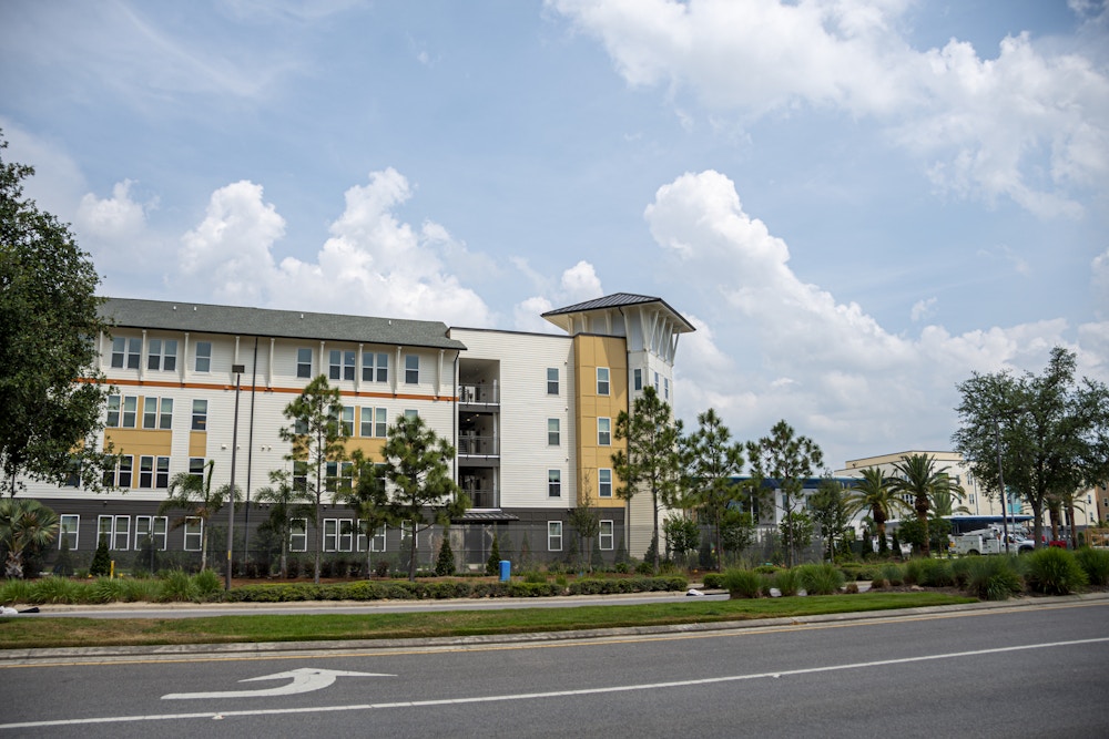 Work on the Disney College Program housing is moving at a rapid pace. The northern-most buildings on the eastbound side of Flamingo Crossings Blvd. are nearly complete.