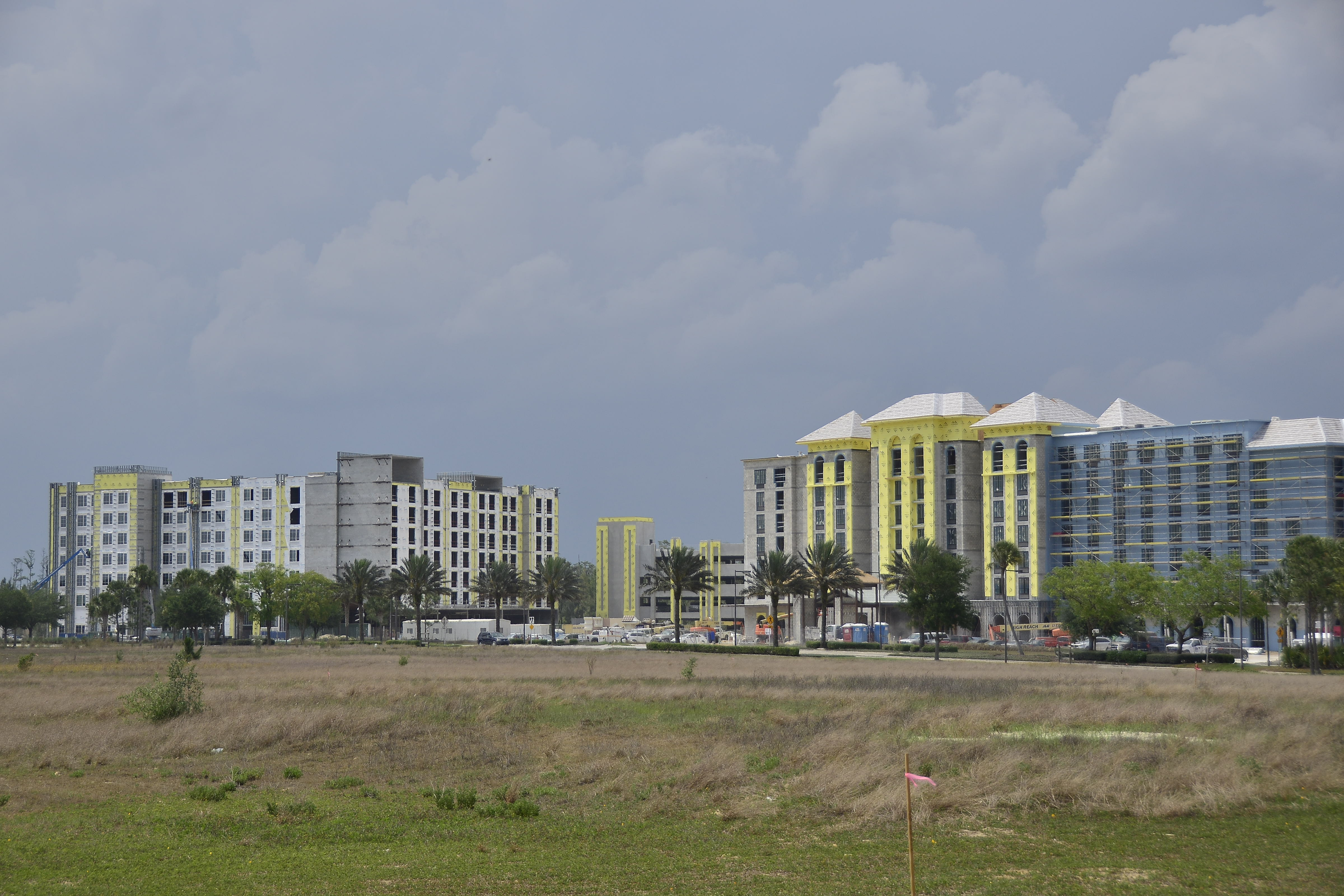 Work on the Disney College Program housing is moving at a rapid pace. The northern-most buildings on the eastbound side of Flamingo Crossings Blvd. are nearly complete.