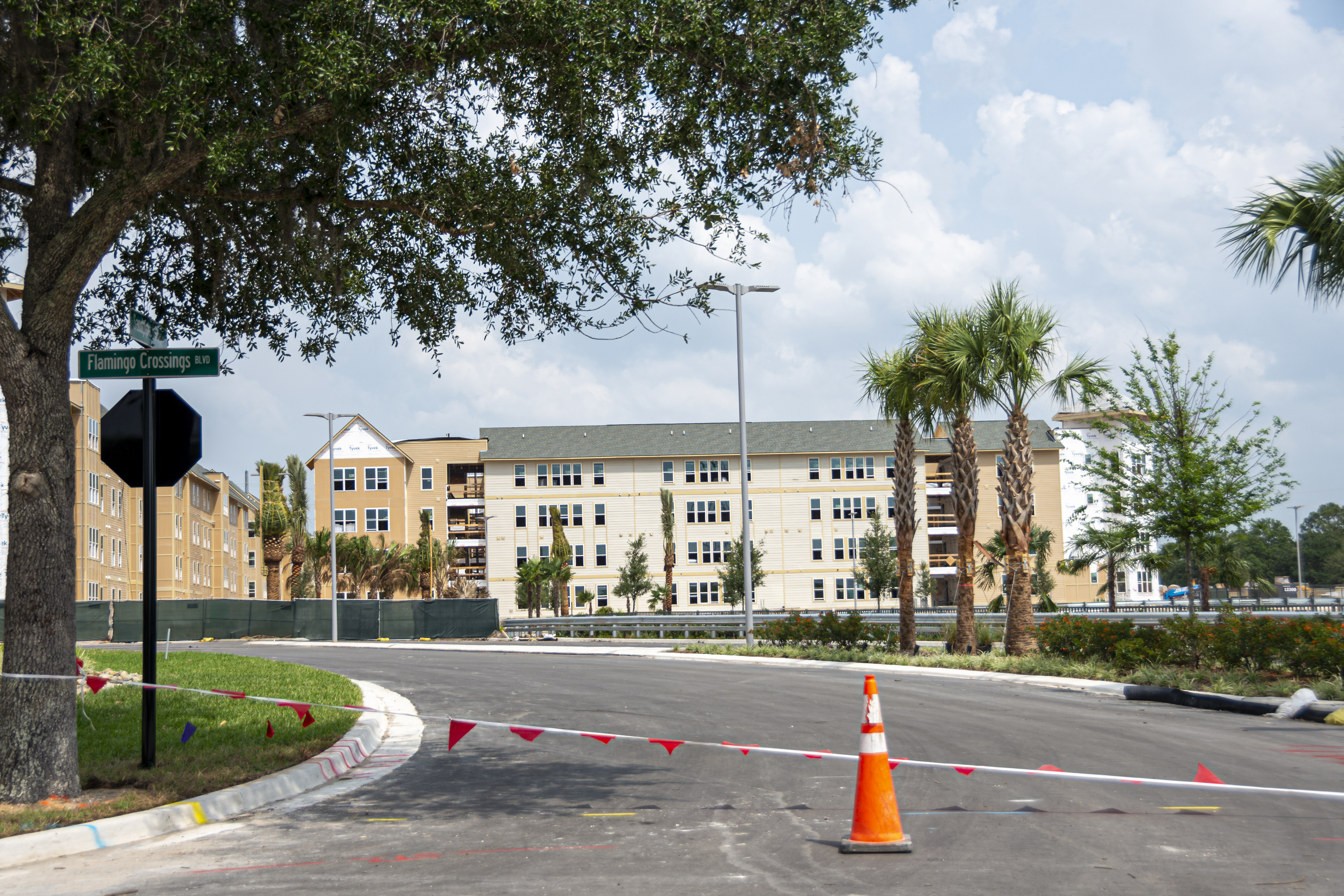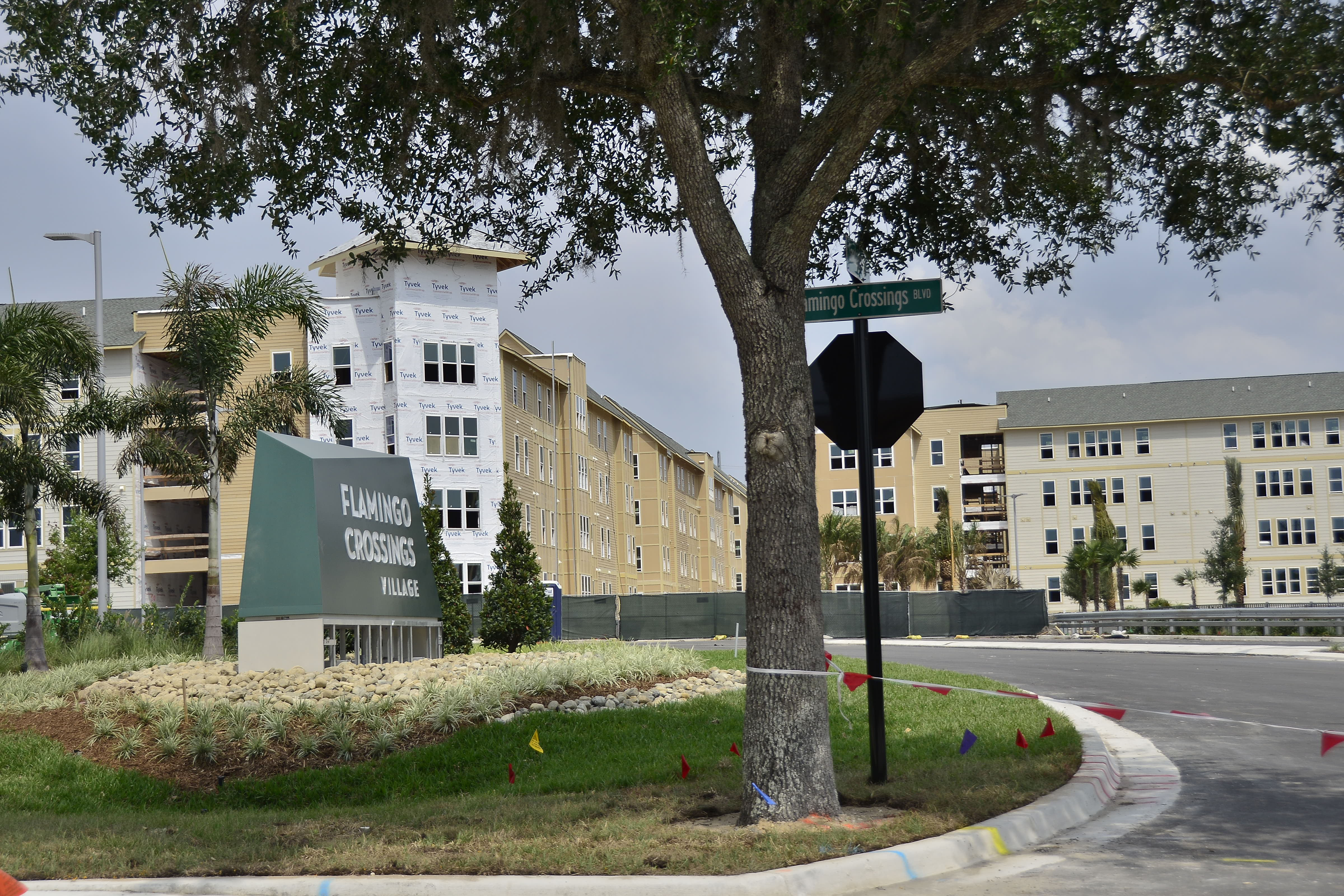 Across the street, more apartment-style buildings are going vertical along the western side of Flamingo Crossings Blvd.