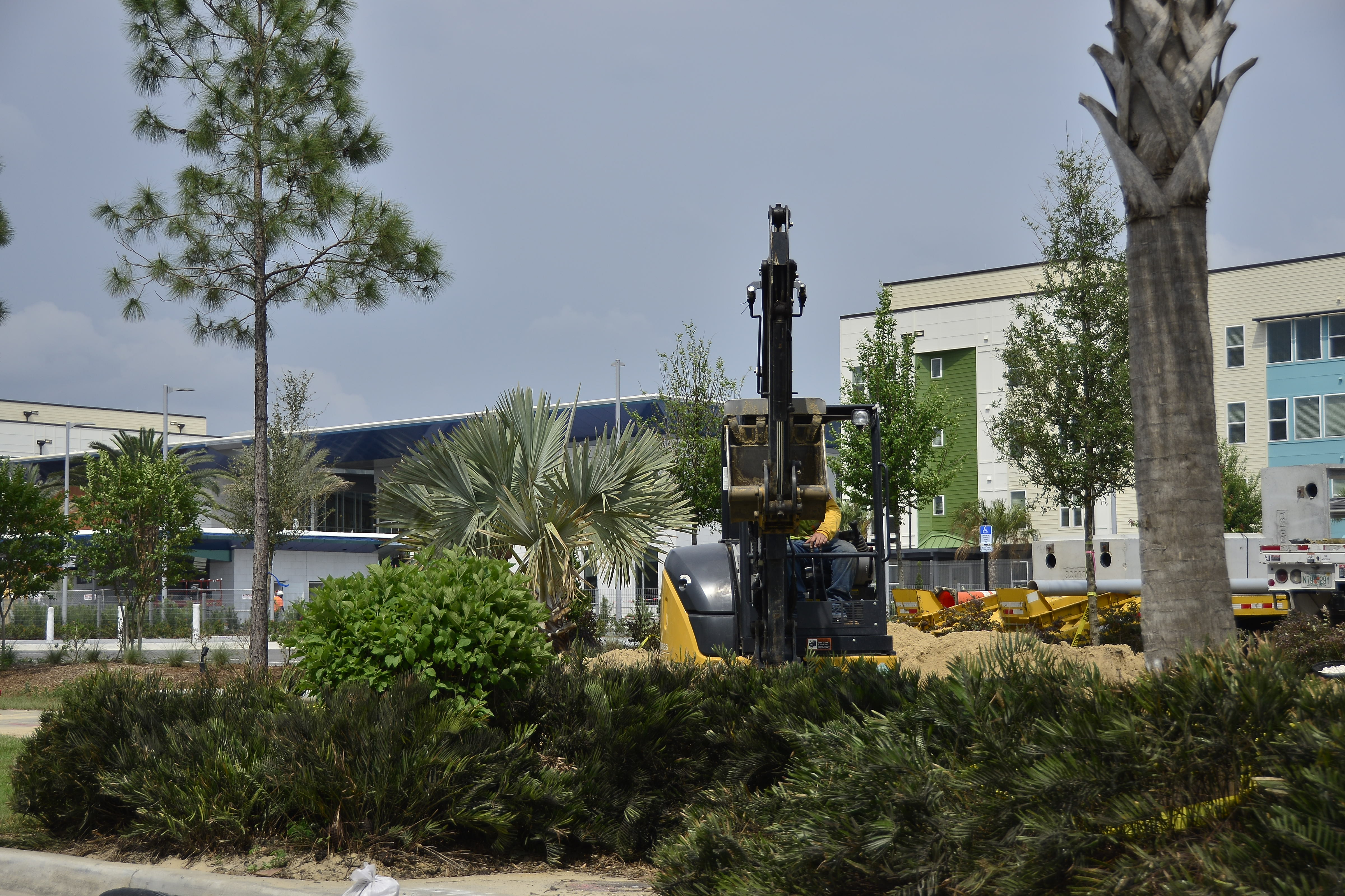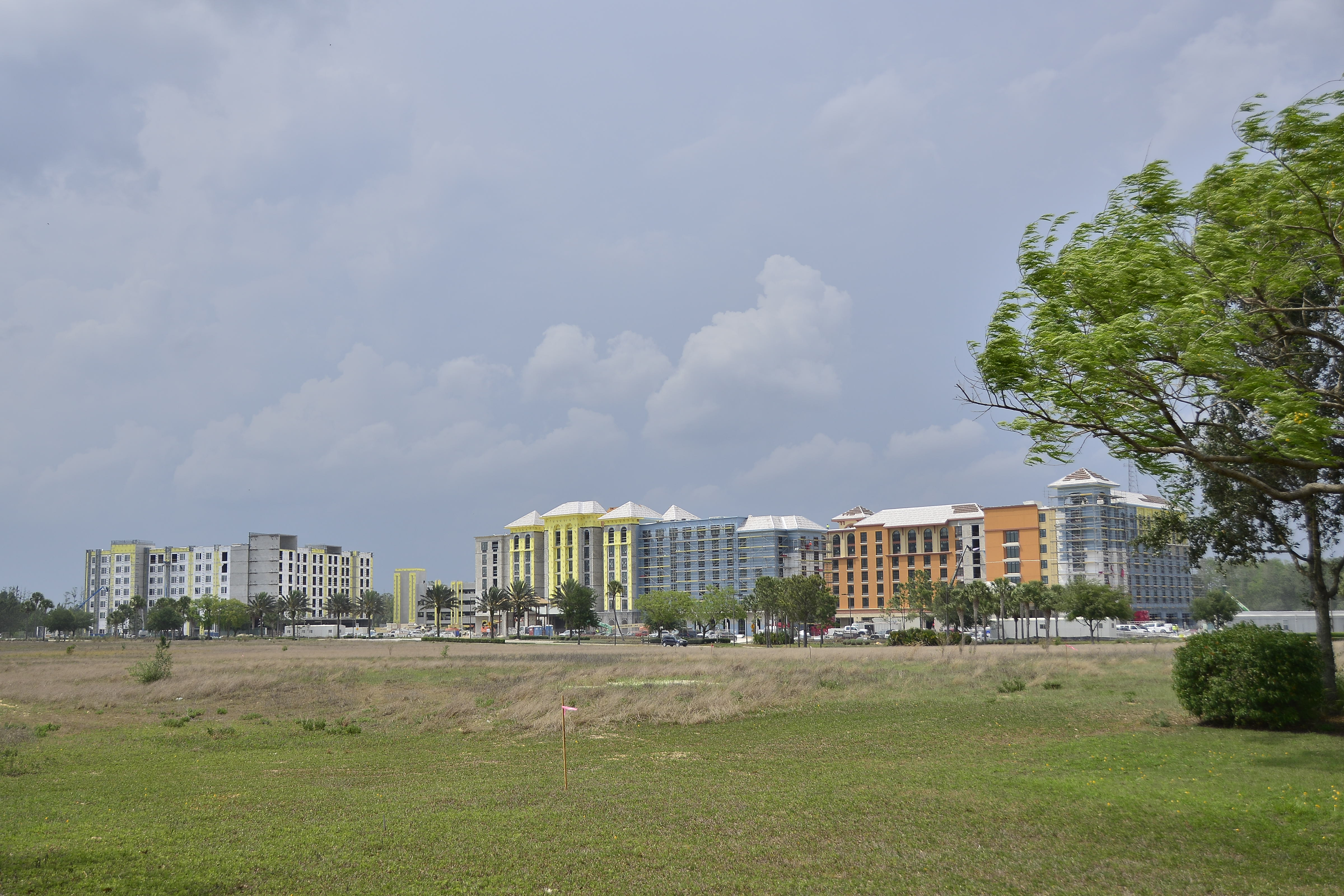 Traveling south on Flamingo Crossings Blvd. reveals a large construction site that is currently being used as storage just north of the Disney College Program housing.