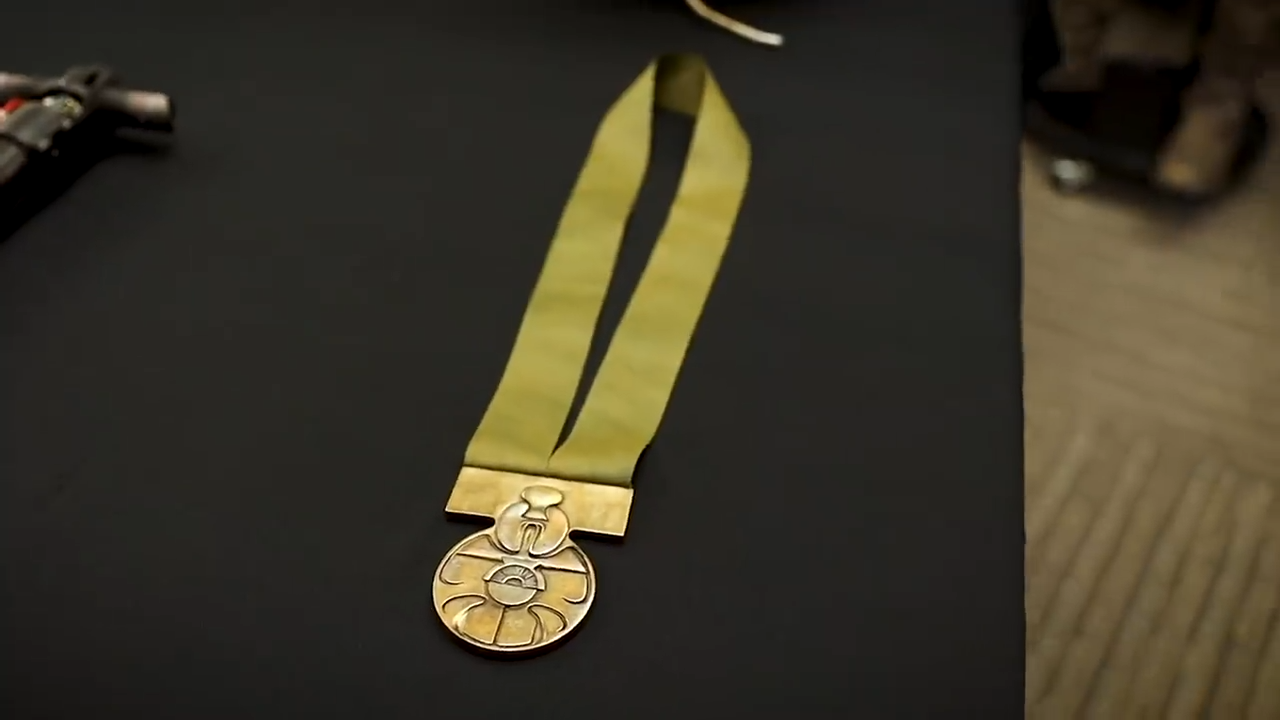 Lucasfilm archivist Madlyn Burkert revealed that medal was forged from brass, as the direction to the prop makers was to “make it look precious, make it feel authentic, but also make it look like it was cared for for a very long time.”