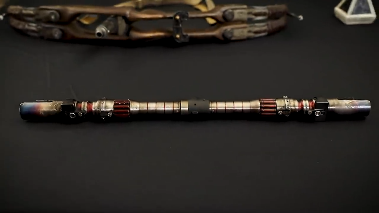 And it wouldn’t be a Star Wars prop tour without at least one lightsaber. Below, you can see Rey’s double-bladed dark side lightsaber.