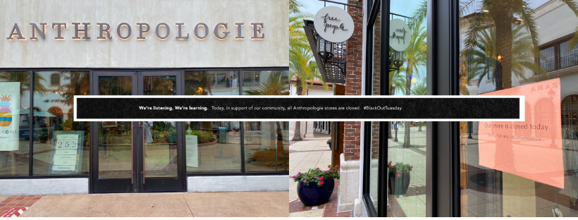 Although there were no signs posted outside of Anthropologie, their website has stated that they are closed today due to Blackout Tuesday.