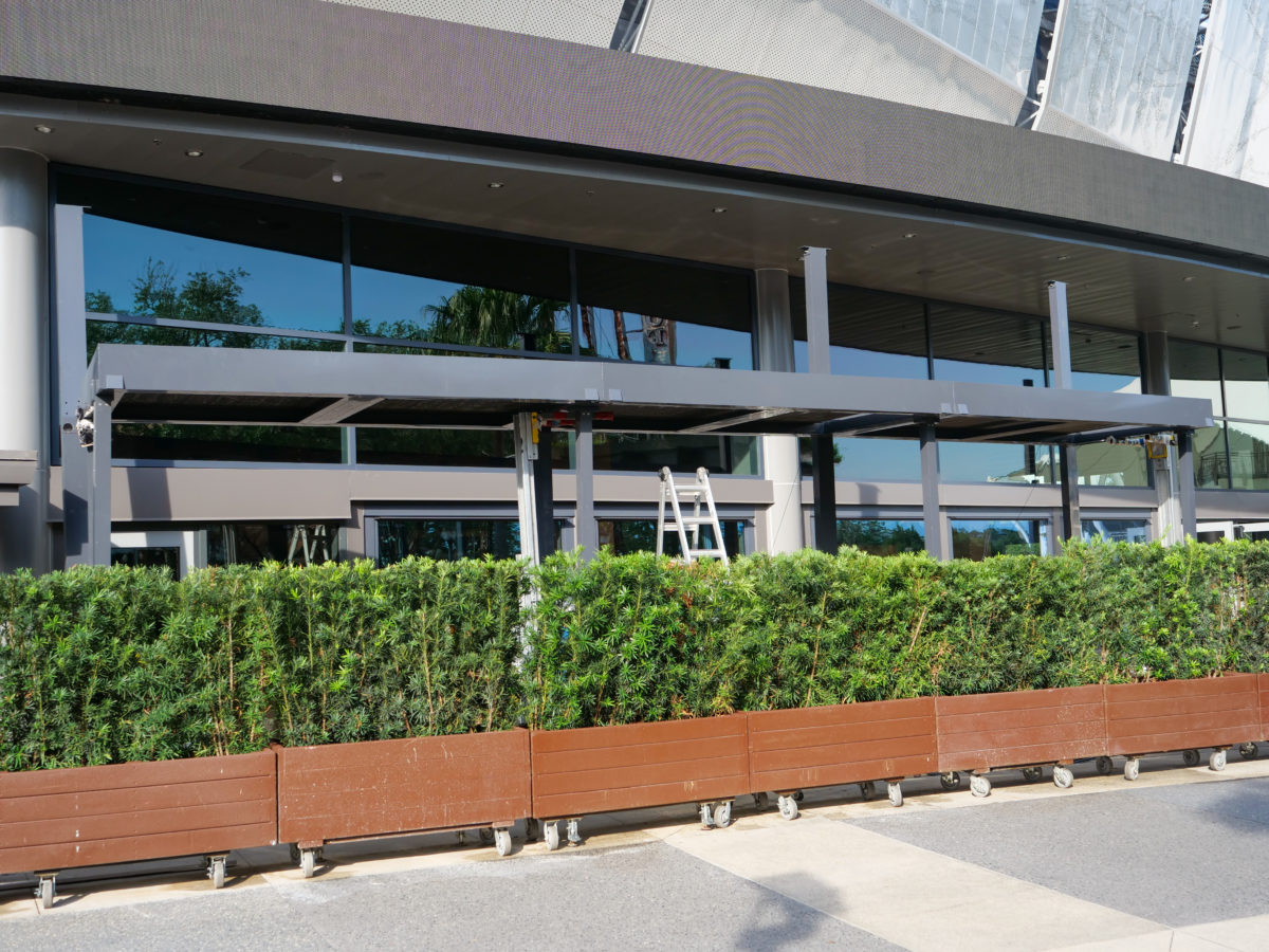 When Disney Springs re-opened on May 20th, we had a fairly good idea of what to expect. One surprise, however, came in the form of rolling planters surrounding City Works Eatery & Pour House’s outdoor seating area. Since then, we’ve gotten a better idea of the nature of the construction, and we’re now seeing it take shape.