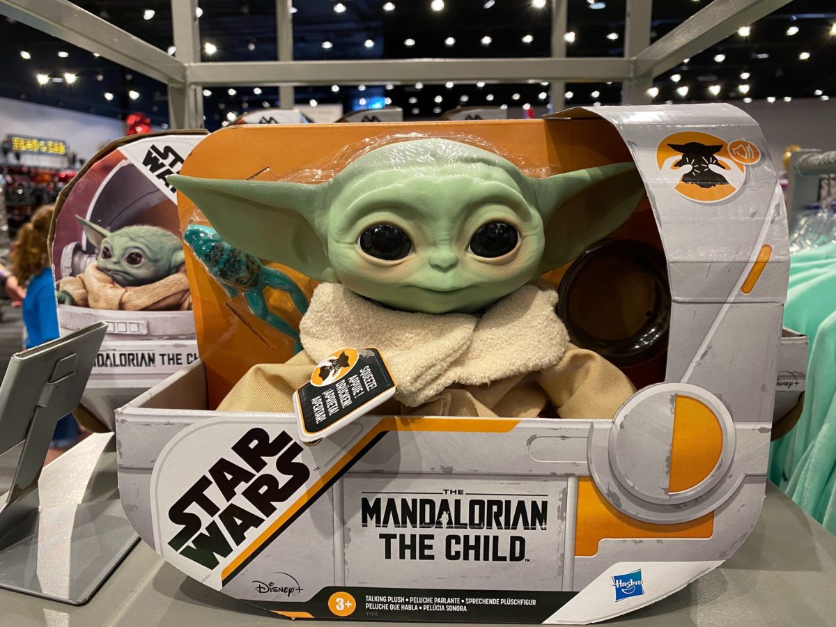 Ever since The Mandalorian aired on Disney+, fans of the series have gone nuts for The Child, affectionately known as “Baby Yoda“. From stickers, to pins, to balloons, people can’t get enough of this adorable green creature. You can even have one travel the galaxy with you right on your shoulder! The newest “Baby Yoda” toy may be the greatest one yet: a talking plush! Take a look at this little guy we discovered in Mouse Gear at EPCOT.