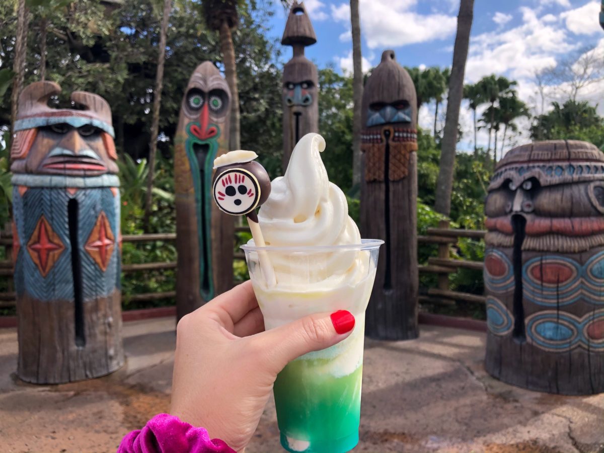 The Kakamora Float is now available all day from Aloha Isle Refreshments. This creamy coconut-flavored Dole Whip is topped with pineapple juice, blue curacao syrup, and an adorable chocolate Kakamora cake pop. It originally debuted at Mickey’s Very Merry Christmas Party at the end of 2019, but became so popular, it became a regular item on the menu.