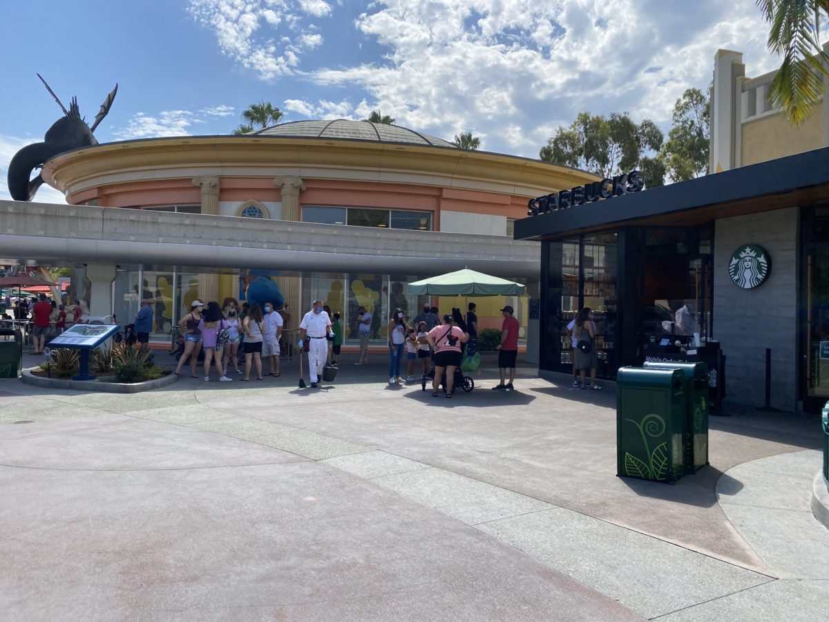 Guests who needed a morning caffeine fix waited outside the Starbucks near the West Entrance of Downtown Disney.