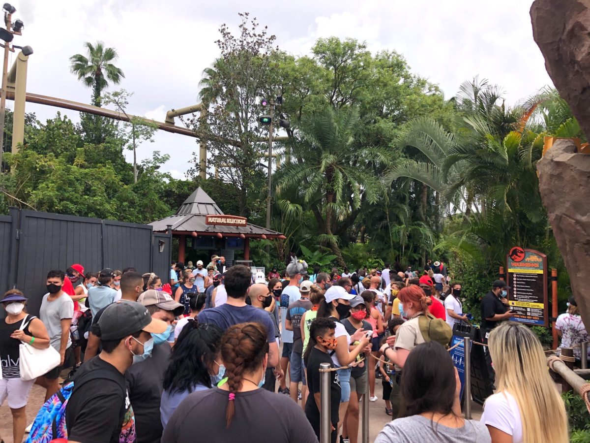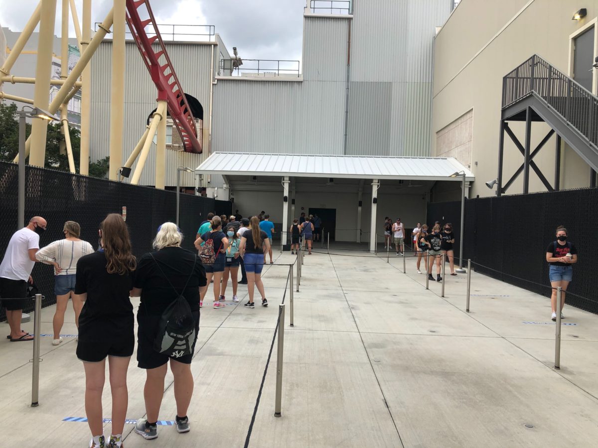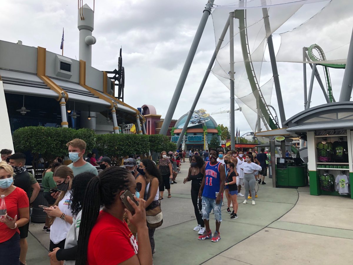A lot of people were just hanging out near Hollywood Rip Ride Rockit. At least people were social distancing.