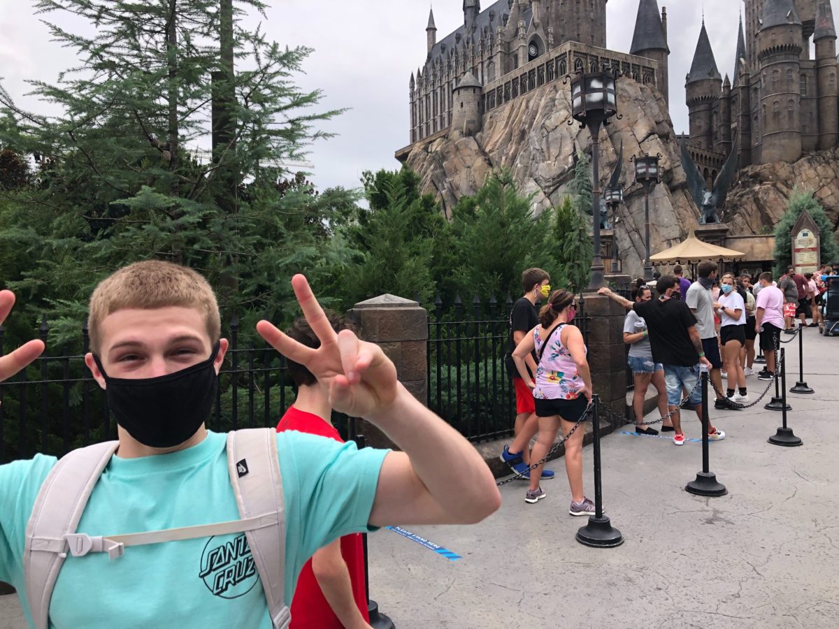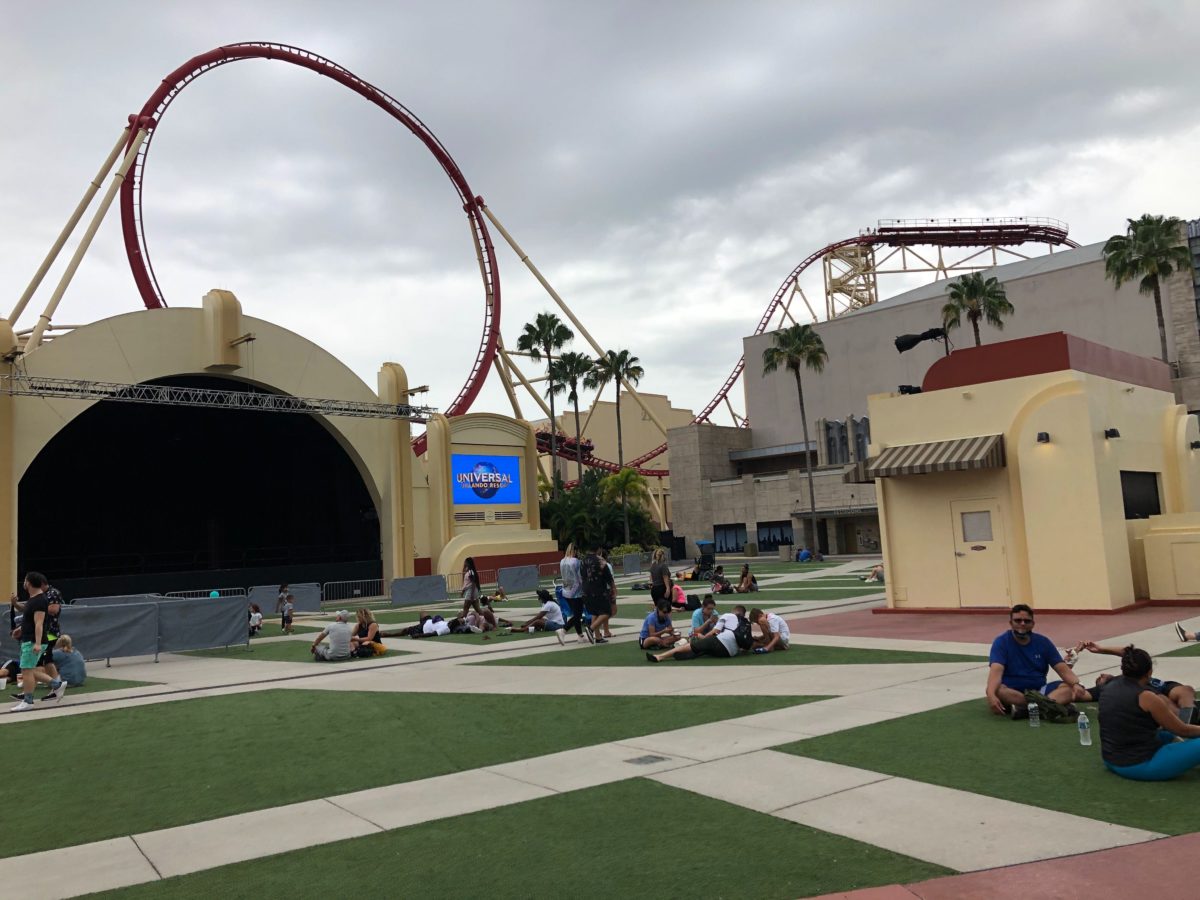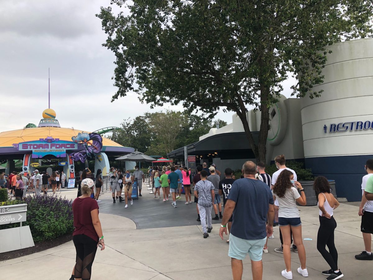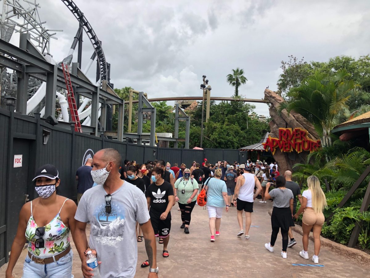 A lot of people were just hanging out near Hollywood Rip Ride Rockit. At least people were social distancing.