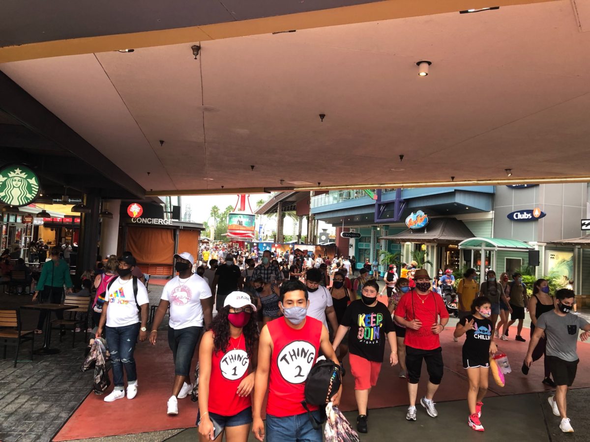 1. This would make me NOT want to go to Universal. It’s crazy they are allowing that many people in. At least by your photos it looks as though this would be a normal August crowd. Either they are handling it all wrong, or they are being greedy in trying to get crowds back. Even having a water park open seems strange. Yes, it’s highly treated water but folks, especially kids are still going to be knocking into one another. And I’m not so sure having food samples out at the one shop is the right thing to be doing at this time.