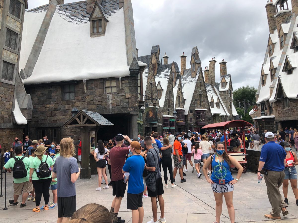 The Wizarding World is always the busiest section of each park, and today we found a lot of crowding in Hogsmeade. Hagrid’s Magical Creatures Motorbike Adventure was closed last weekend after a backstage fire, so we’re not surprised there are many people trying to experience the attraction.