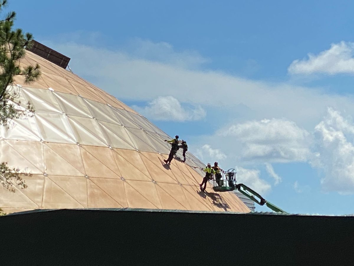 PHOTOS: Refurbishment Rapidly Progressing on Play! Pavilion Roof at EPCOT