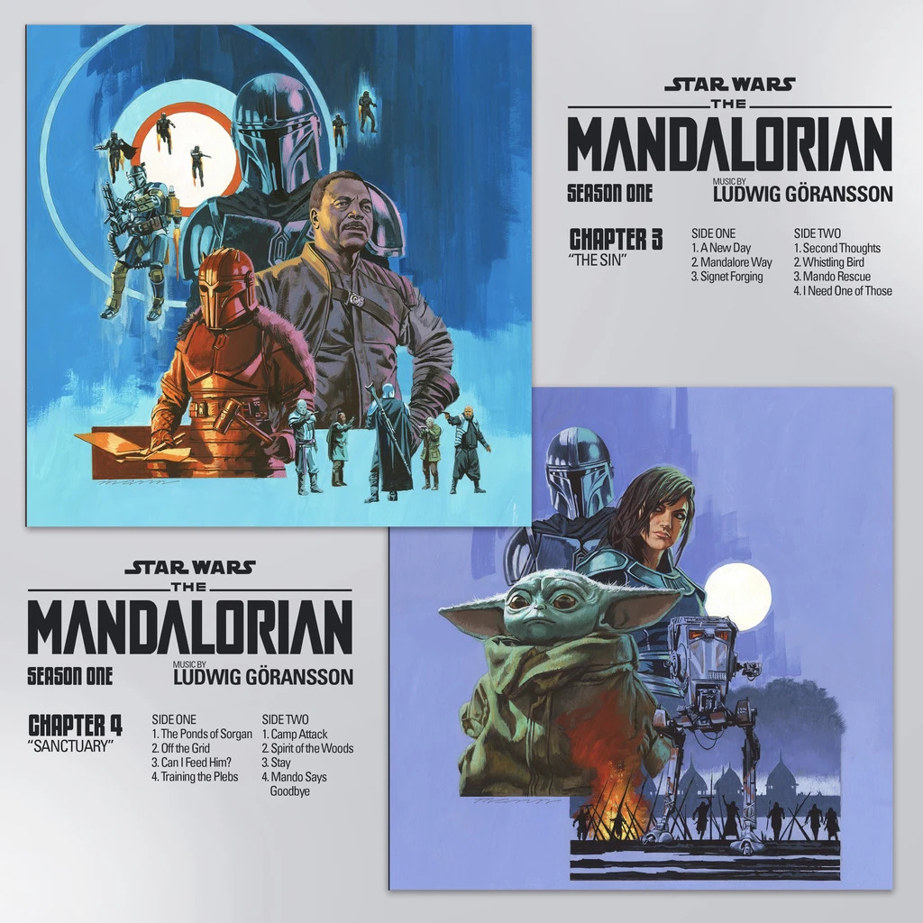 Ask any hipster how music should be listened to and they’ll tell you that This Is The Way — on vinyl. And now you can listen to every dulcet tone of Ludwig Göransson’s Emmy-nominated score to “The Mandalorian” Season One on vinyl. The beautiful new boxset comes from Mondo, in conjunction with Walt Disney Records. It features eight vinyl records — one for each episode of the first season. Each record has its own slipcase with cover art by Paul Mann, whose style is sure to evoke memories of the great illustrated posters from the 1970’s, including those done for Star Wars by master poster artist Drew Struzan. All eight records fit within the larger slipcase featuring the signet of the Mudhorn on a field of beskar. Take a look at the awesome cover images and tracklists below.