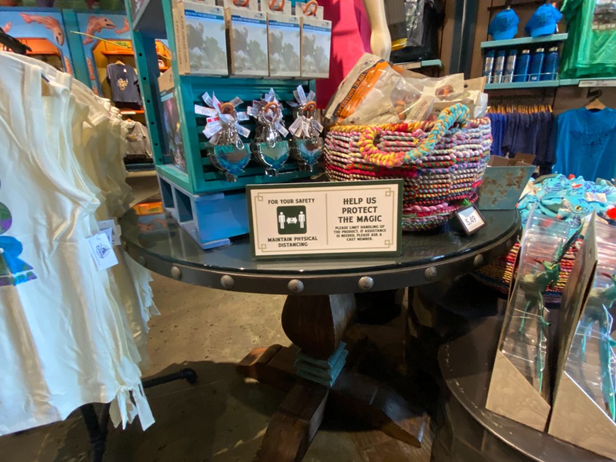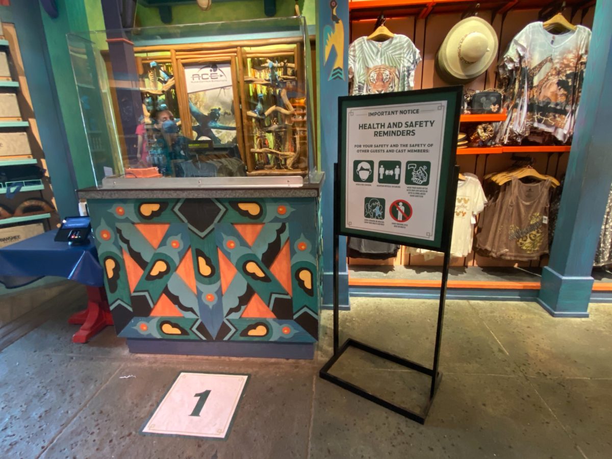 Tucked away in a corner, the Rookery has reopened, where guests are able to adopt shoulder Banshees, usually found in Pandora – The World of Avatar. Here, plexiglas screens have been mounted to the register, to protect the Cast Member behind it. Floor markers and clear signage reinforce proper health and safety rules for guests to adhere to as they wait.