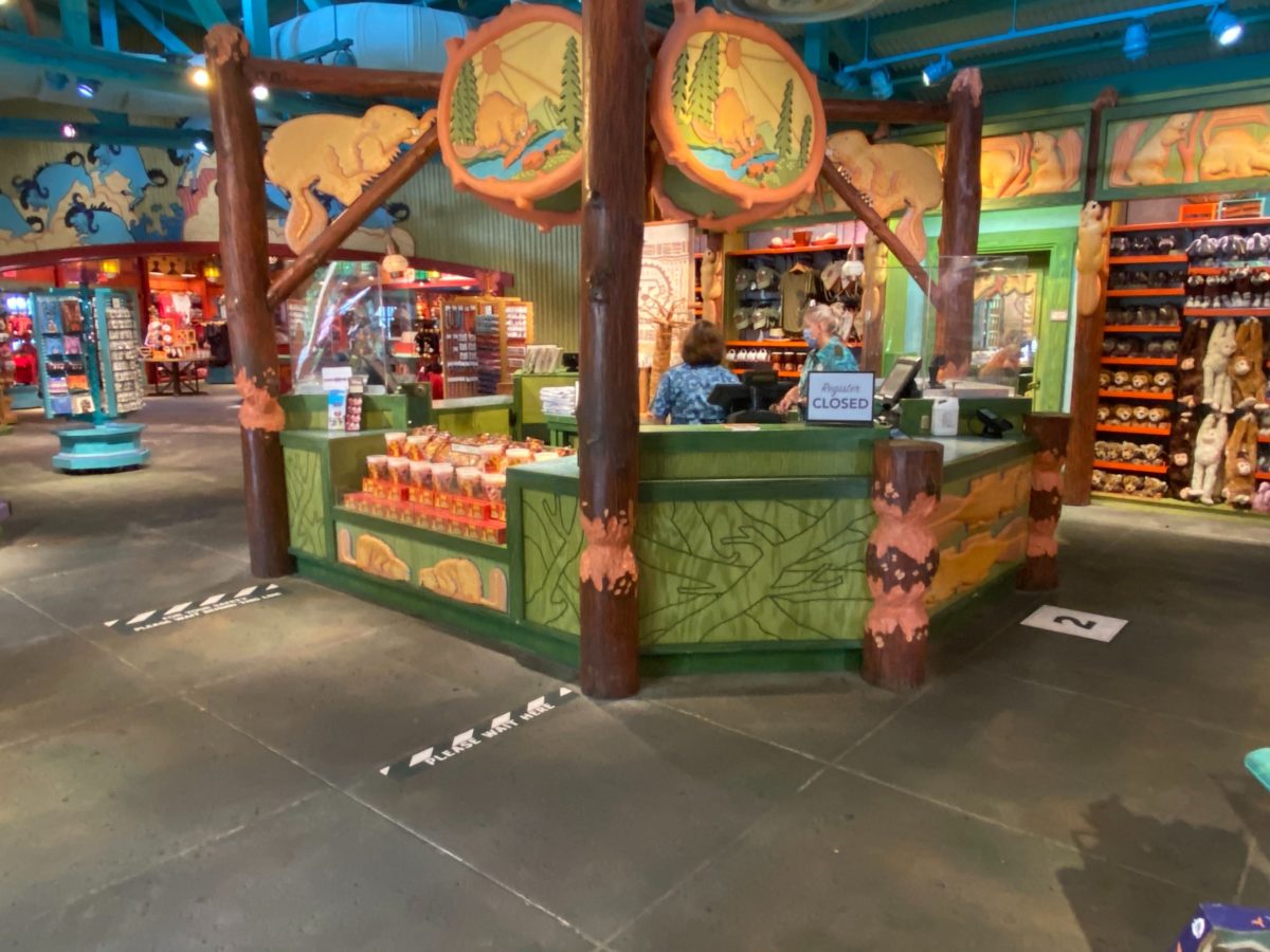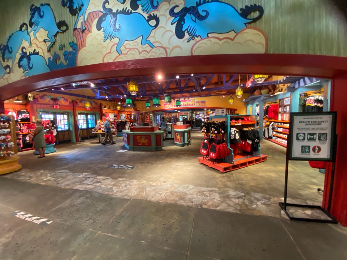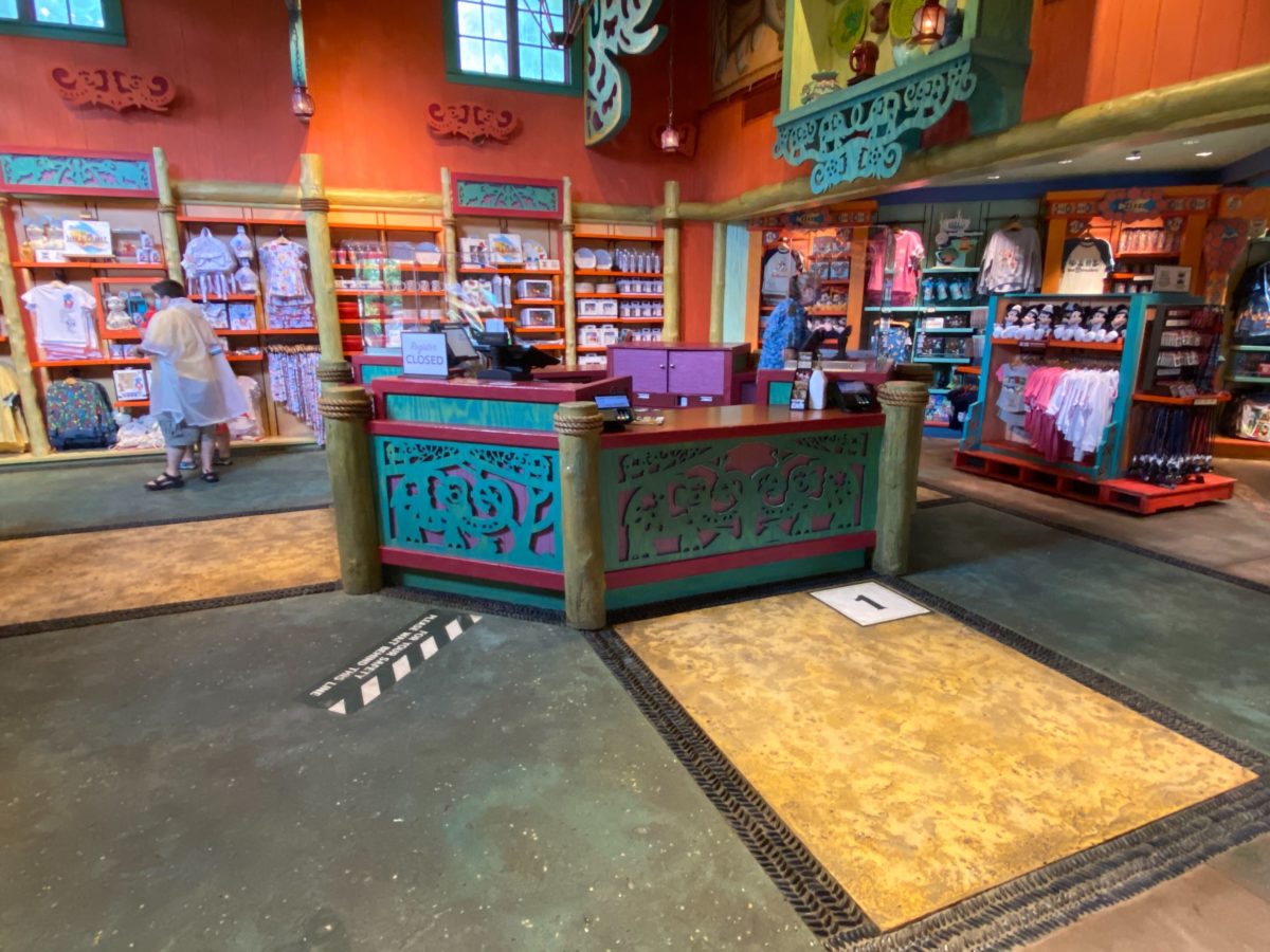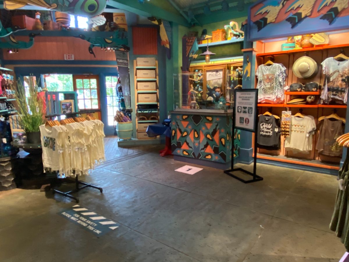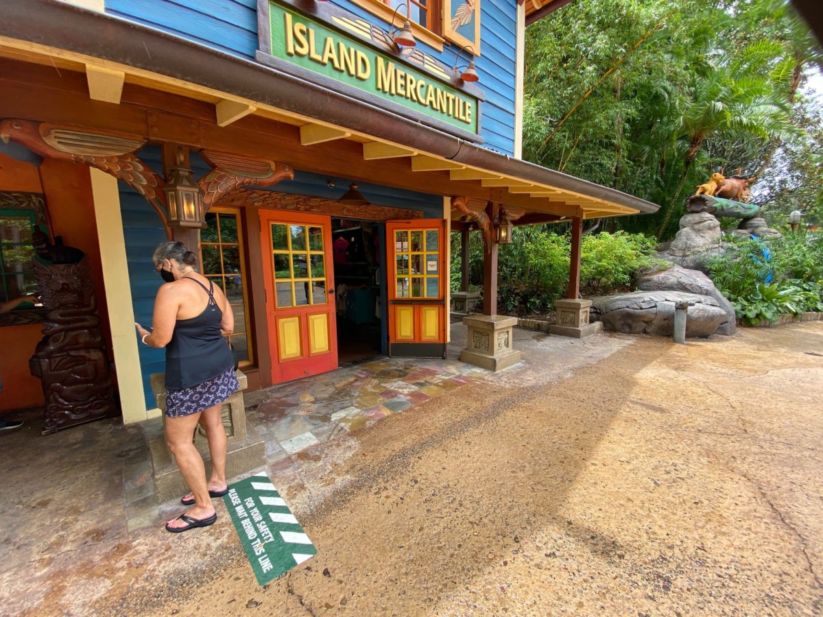Island Mercantile is a particularly large store, with multiple exits and entrances which allow guests to exit to different parts of the area surrounding Discovery Island. Under new health and safety restrictions, a one-way system has been implemented at the store, with the only way in now at the entrance located near the “Lion King” photo op.