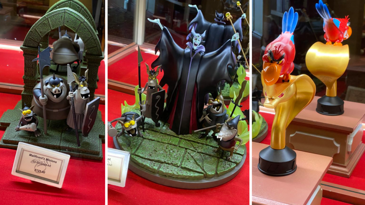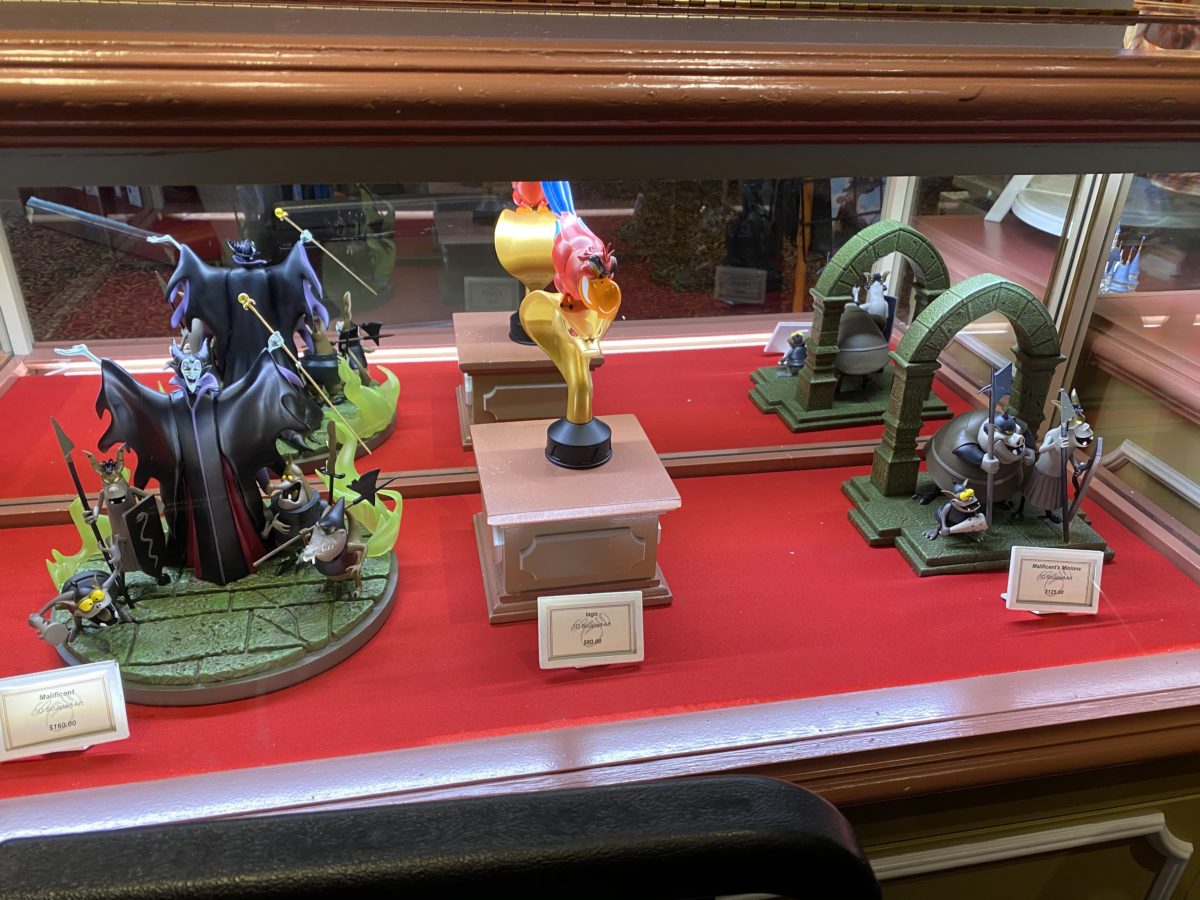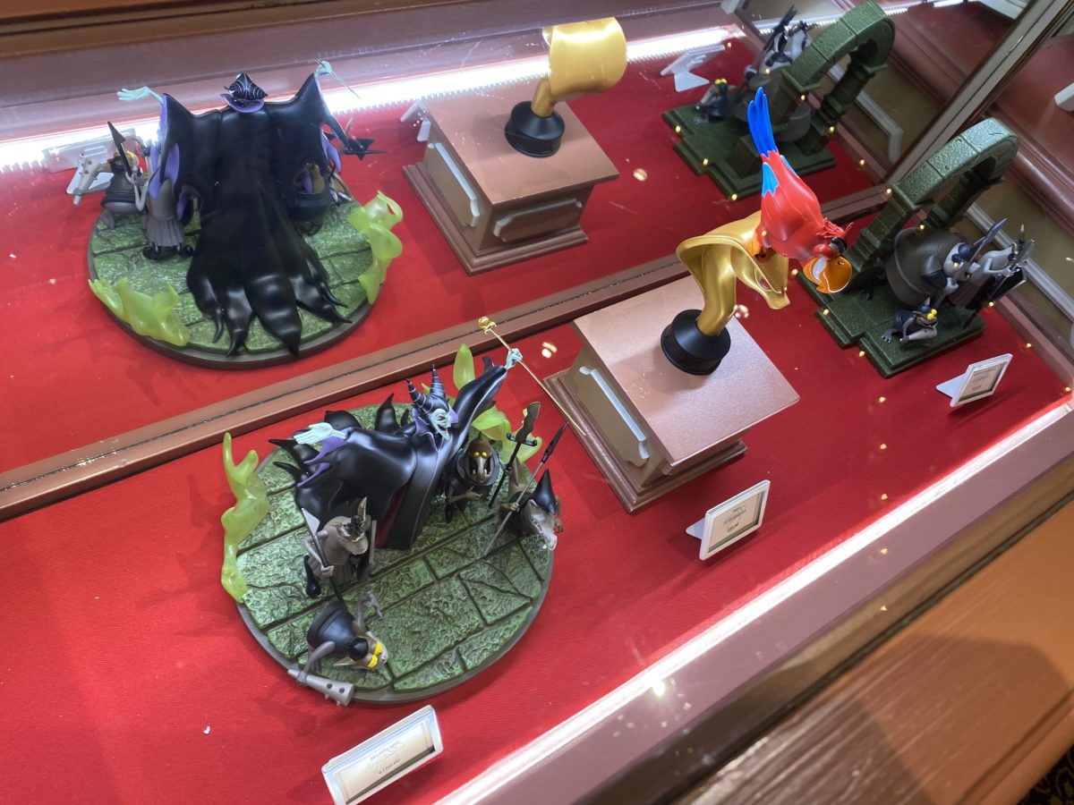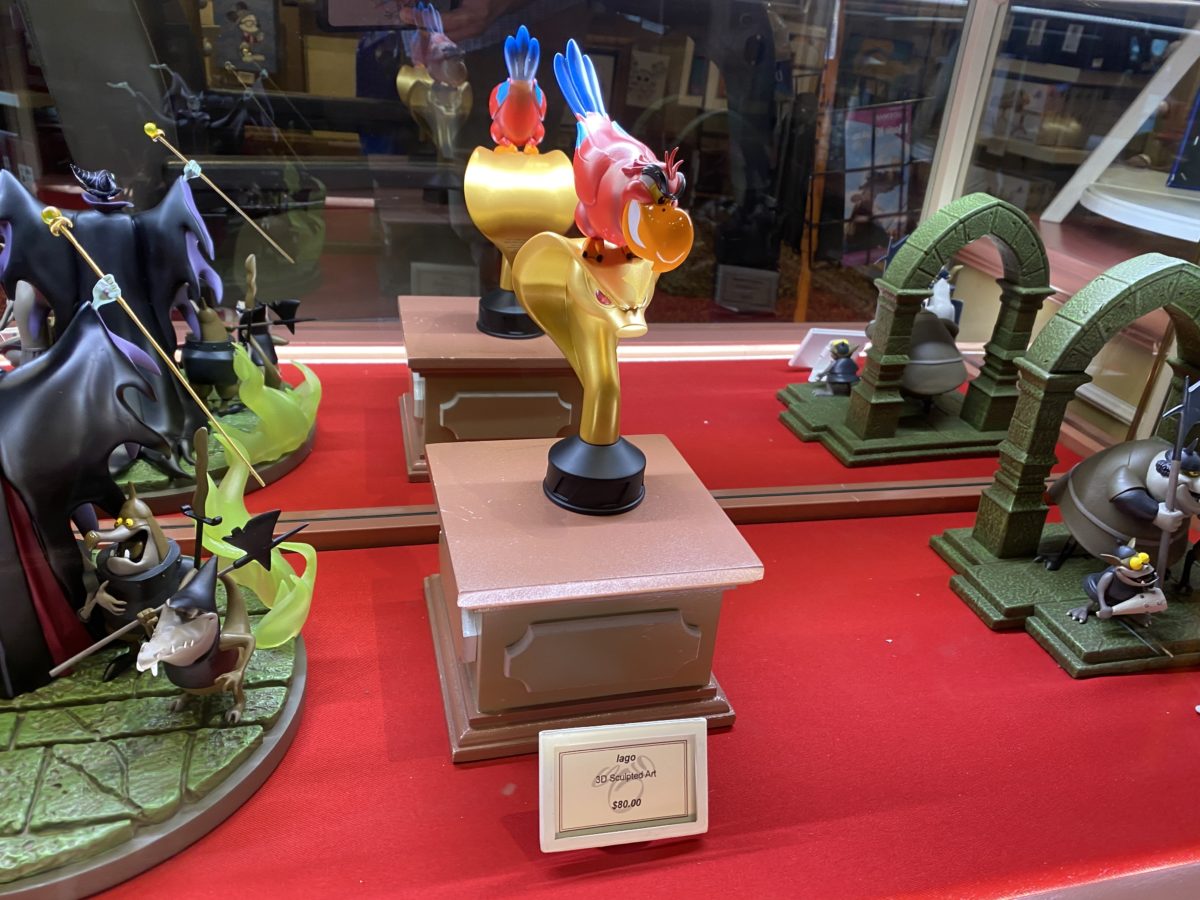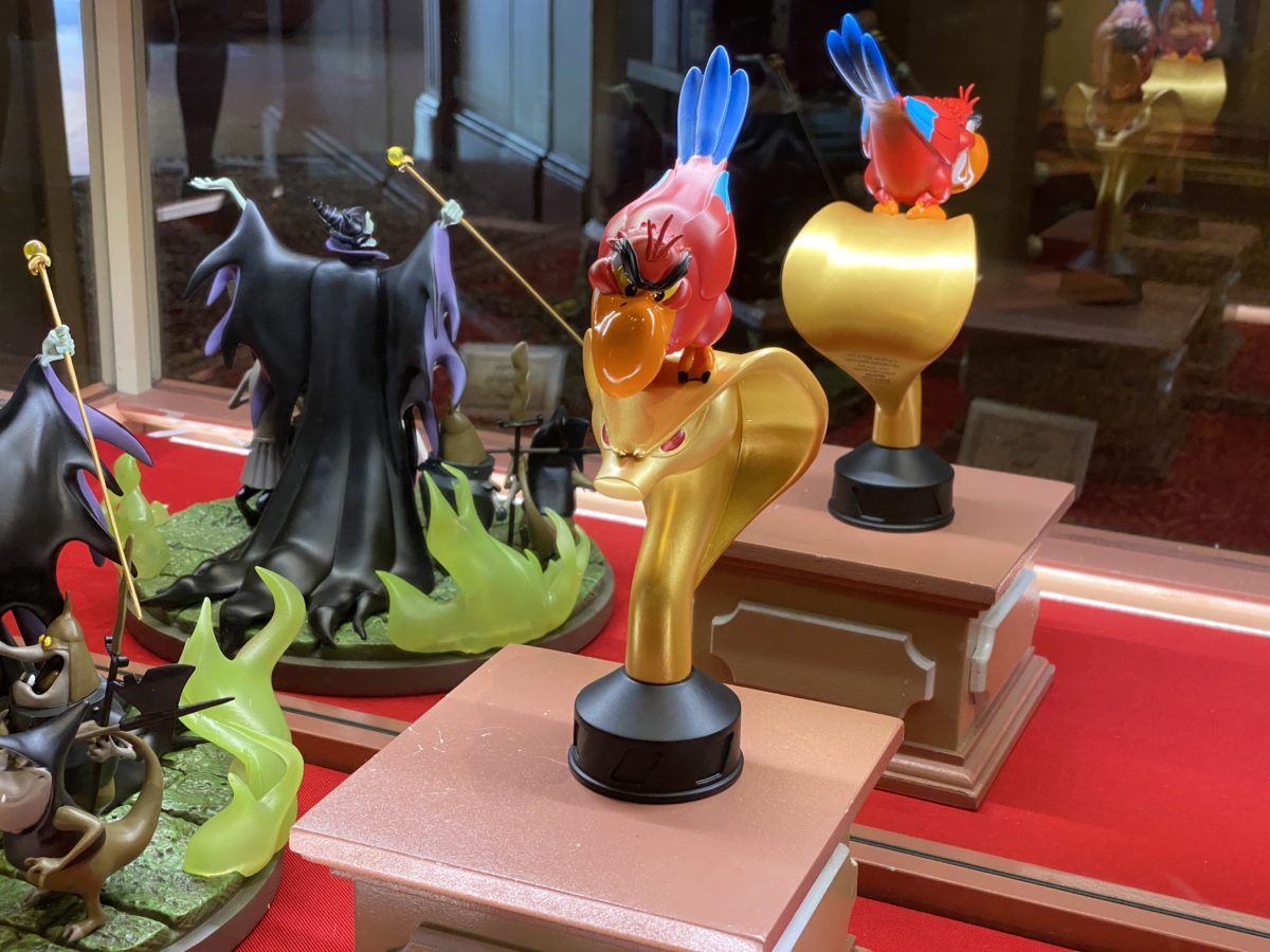 You can find these on shopDisney or at the Magic Kingdom in the Main Street Cinema. Judging from shopDisney’s assertion that you can find “additional Disney Villains figures, sold separately” we would guess that there will be more villains than just Maleficent and Iago in this collection soon. You can also find some cheaper Disney Villains merchandise at the parks.