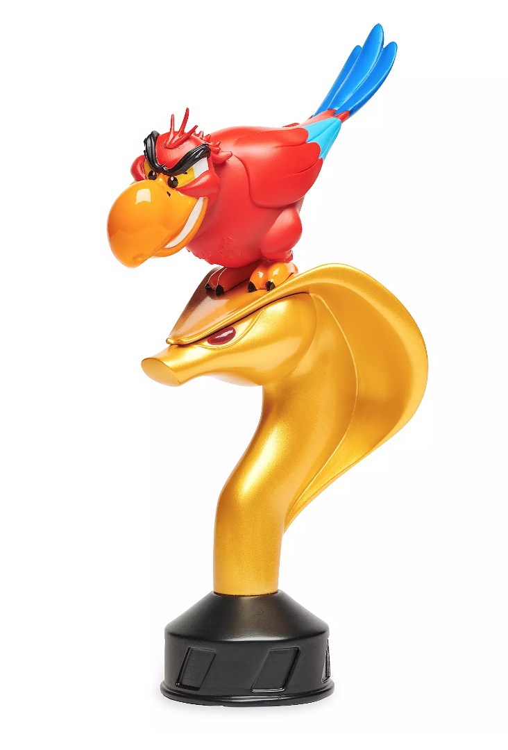 In this figure, Iago from Aladdin is perched on the top of Jafar’s staff.