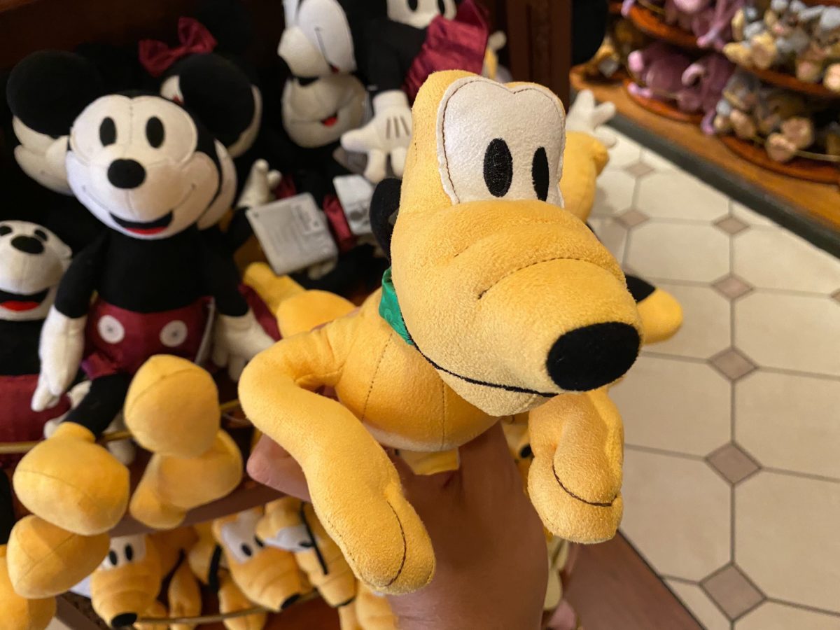 Pluto has a collar that is similar to the clothing of the previous plush toys, except it is green.