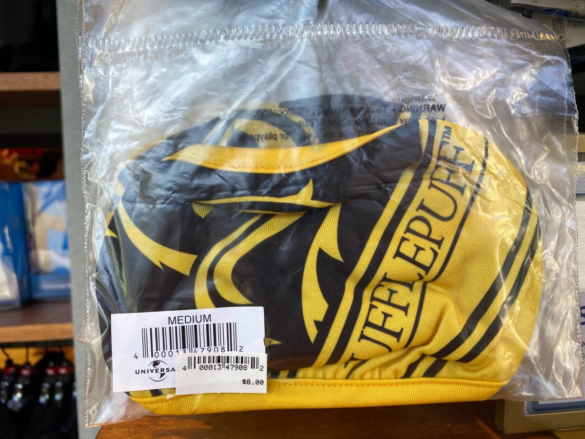 The Hufflepuff mask features the house animal, the Badger, and house colors of golden yellow and black.