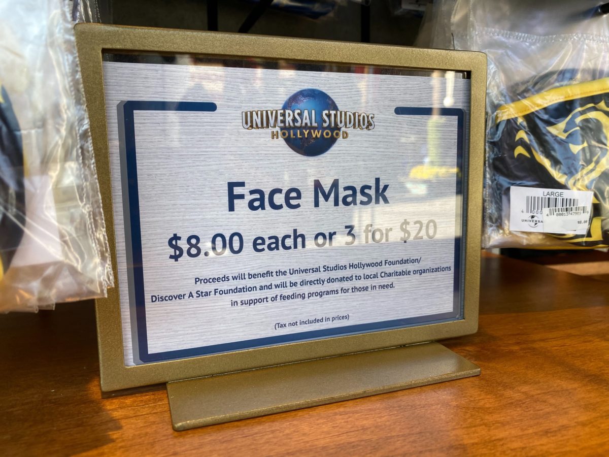 Each mask retails for $8 or three for $20, an increase from the Universal Orlando Resort price of $6 per mask, or four for $20. And purchasing a mask can benefit local charities feeding the hungry. Proceeds from the mask sales the Universal Studios Hollywood Foundation/Discover A Star Foundation.