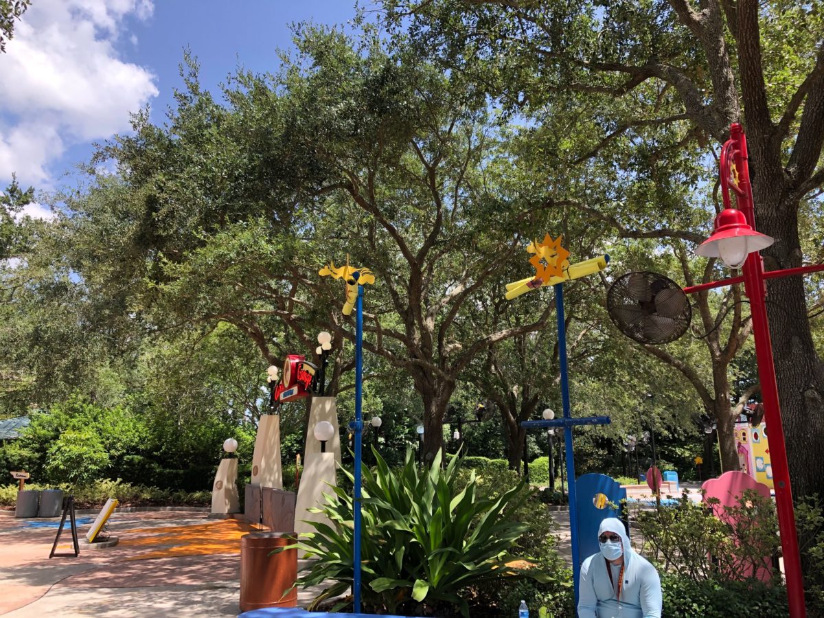 With Hurricane Isaias approaching, Central Florida theme parks are preparing for the high winds and rain that will be hitting them this weekend. As we visited Universal Studios Florida today, we kept track of some of the measures that Team Members were taking to keep the park safe.