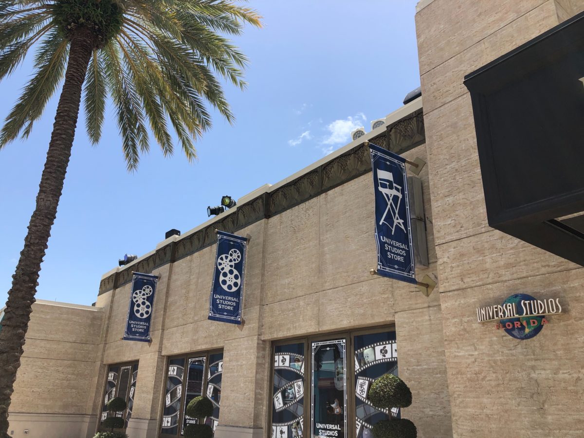 The Universal Studios Store still had banners unrolled. These banners are attached with poles at the top and bottom, so may not need to be rolled up.