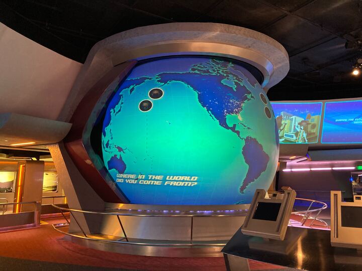 During a recent visit to Project Tomorrow, located at the exit to Spaceship Earth in EPCOT, we noticed that all of the effects for the futuristic games, “Send a Postcard” touch kiosks, as well as the video globe in the center, had been turned off. During a late-night trip to the future this evening, we were surprised to see the video globe effects had once again been restored.