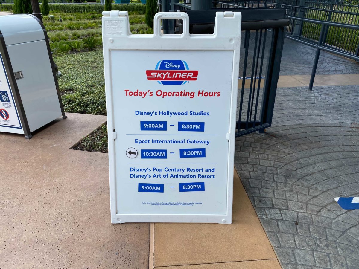Just as before, the Skyliner operates up to an hour and a half after EPCOT and Disney’s Hollywood Studios close, which is now at 7 PM for both parks.