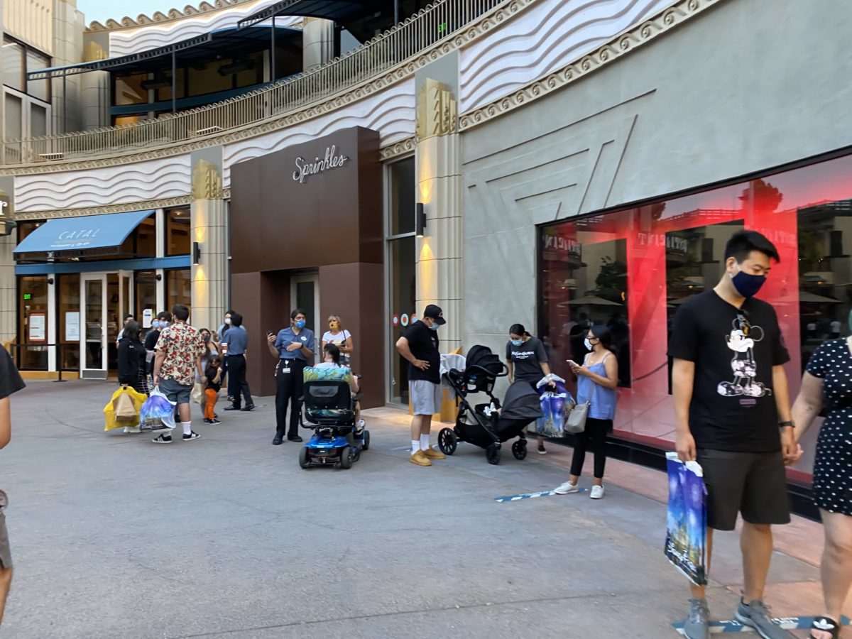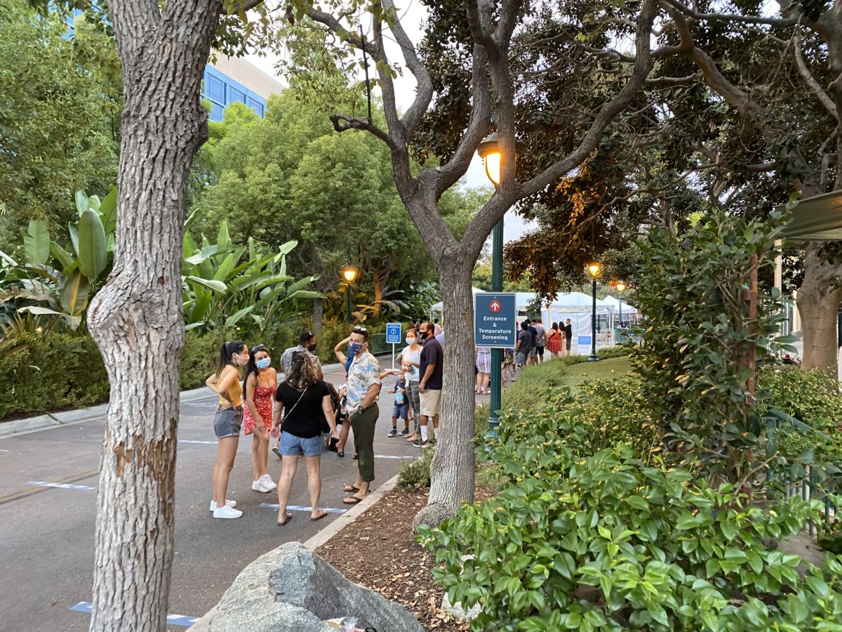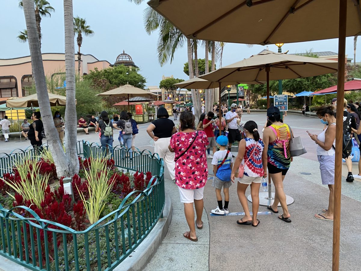 While parking was less of a problem, temperature screenings were a different story. Today, we arrived around 6pm and waited about 25 minutes to enter Downtown Disney, which isn’t terrible.