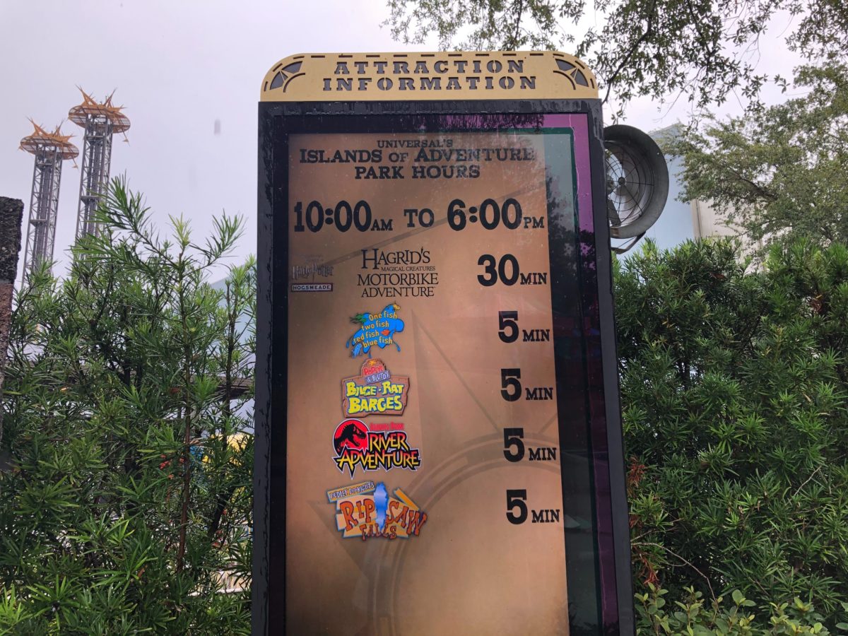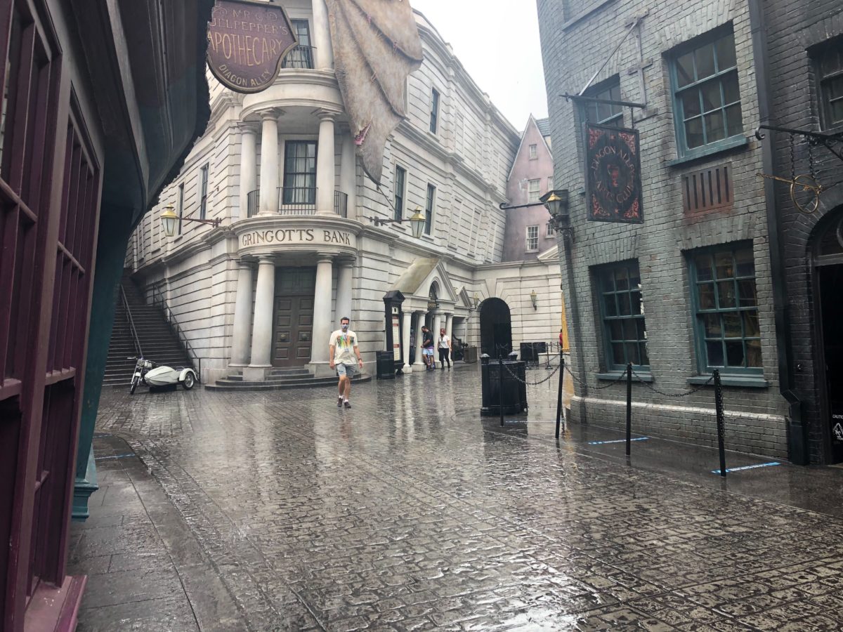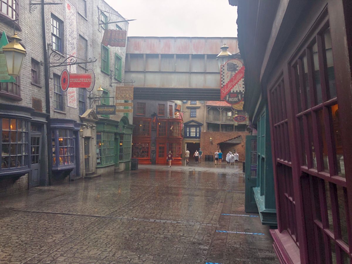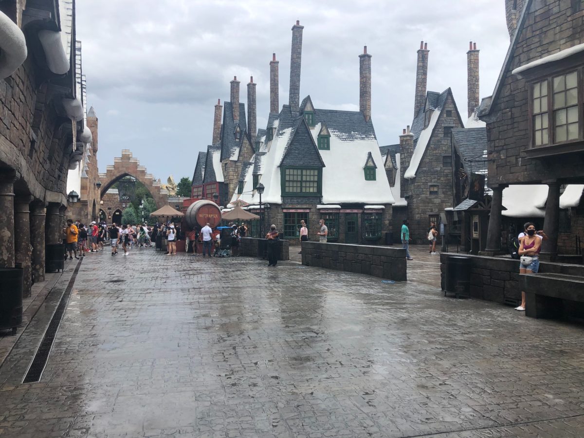 We took the Hogwarts Express to avoid the rain and headed over to Islands of Adventure. Hogsmeade is pretty quiet, aside from guests waiting for Hagrid’s Magical Creatures Motorbike Adventure to reopen after closing for the weather.