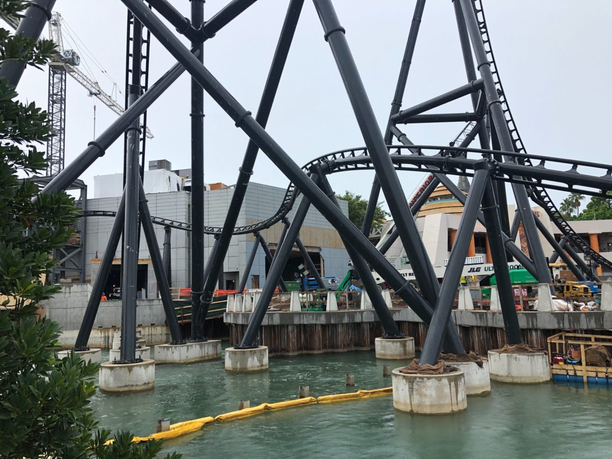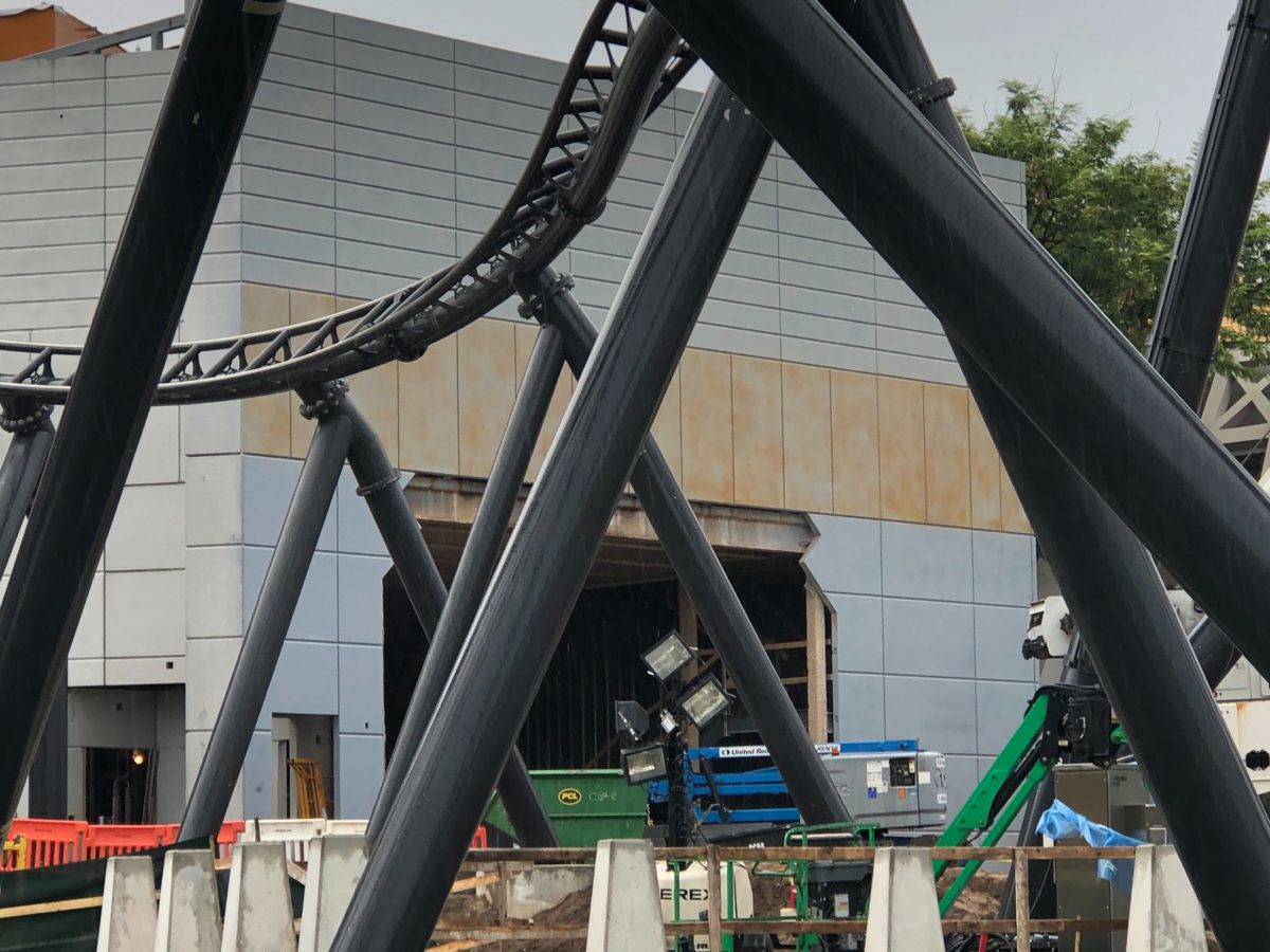 Checking in on the “Velocicoaster” construction, some of the panels along the backside of the show building are a different color now.