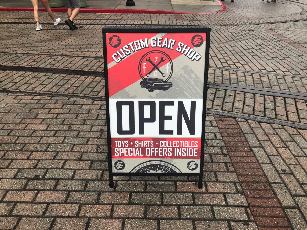 The Custom Gear Shop in San Francisco is trying to stir up some business by putting signs out front to let guests know they’re open. Typically, guests would exit Fast & Furious Supercharged through this gift shop, but since the attraction is temporarily closed, this store has a lot less traffic. There is a FuelRod machine in there, too, so that’s a reason to stop in on your next visit.