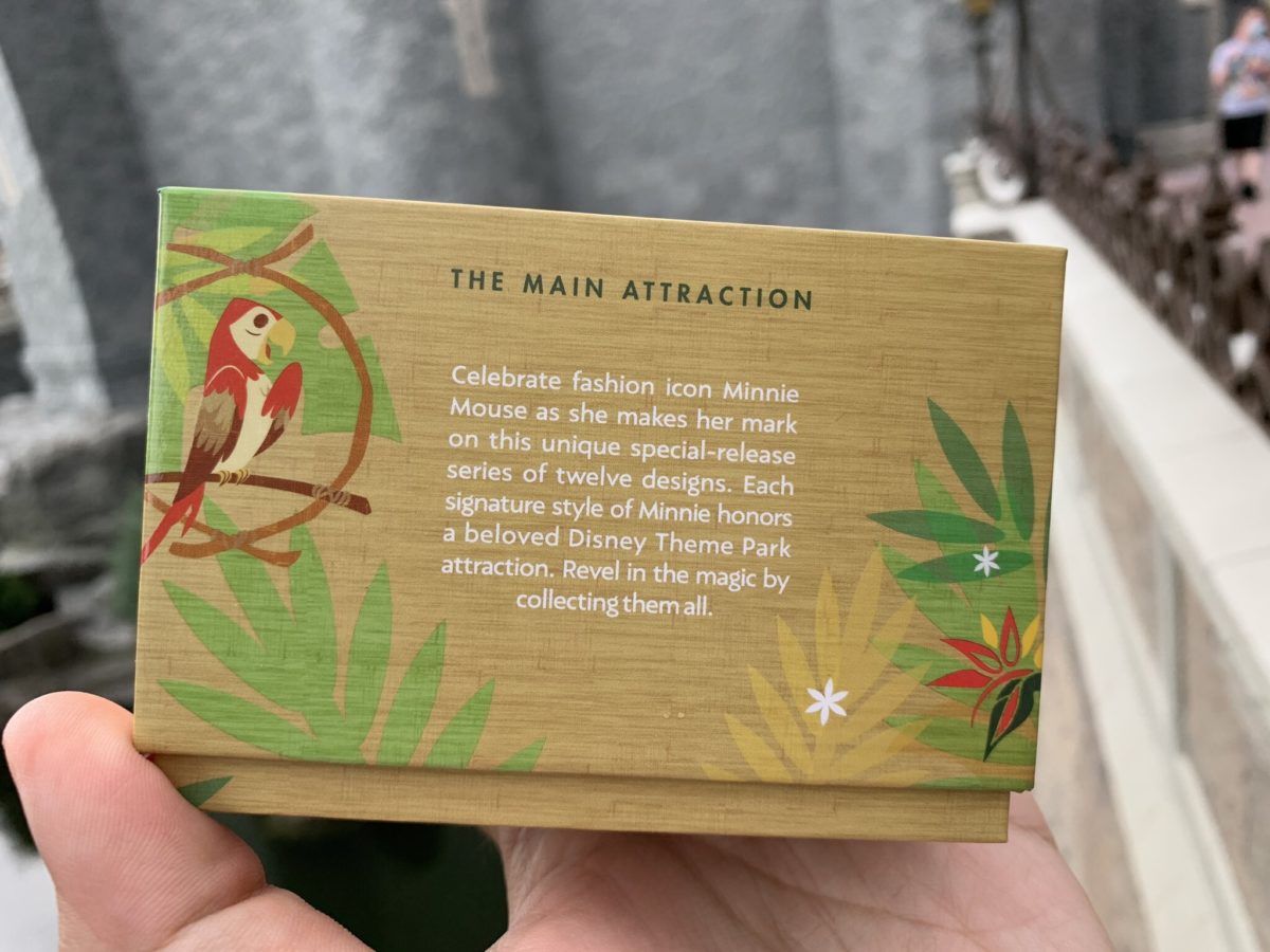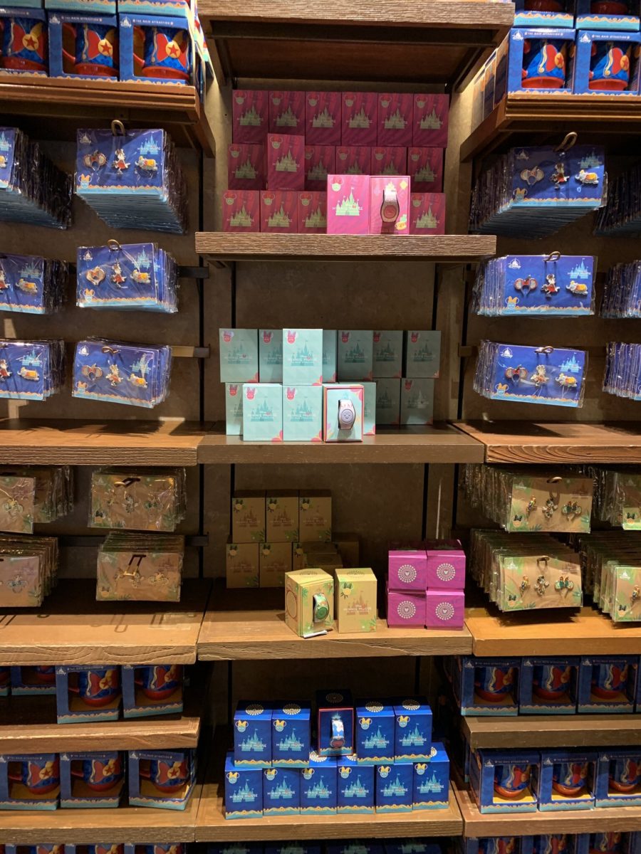 We previously saw the entire Dumbo the Flying Elephant series, including the MagicBand, and the Enchanted Tiki Room pins at Magic Kingdom.