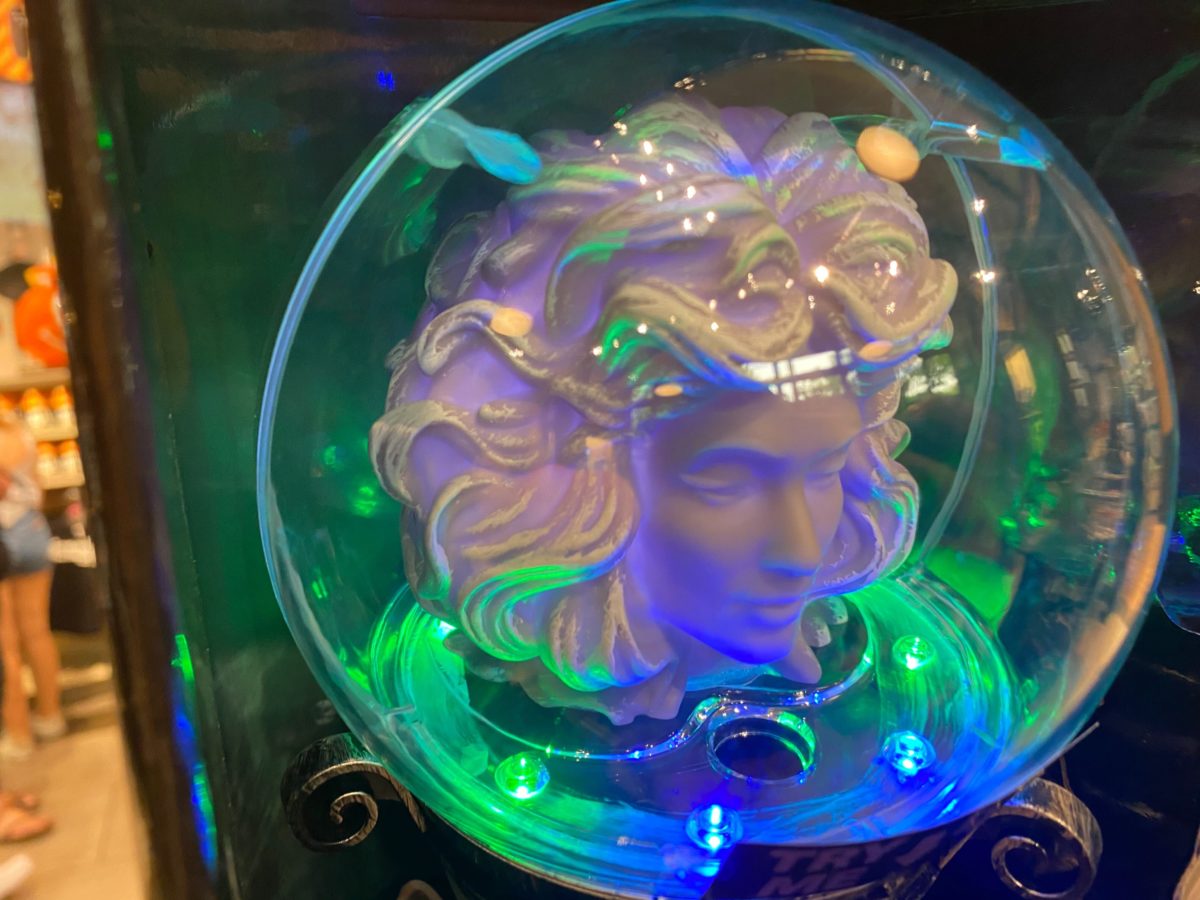 With Halloween right around the corner, new Haunted Mansion merchandise is making its way onto the shelves at the Disney Parks. Among the recent new merchandise is one themed to one of the most iconic characters of the attraction—Madame Leota. Now you can have your very own Madame Leota crystal ball to decorate your house for a swinging wake.