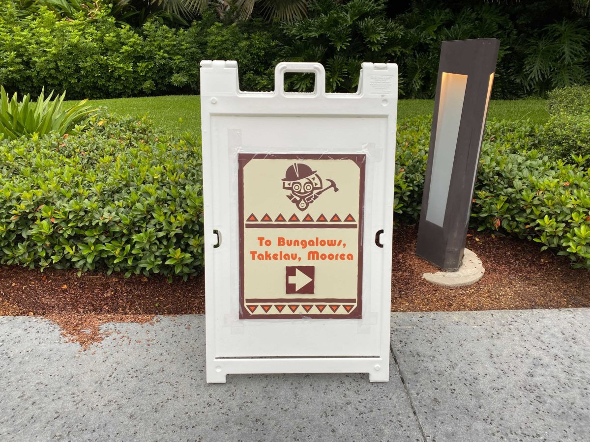 Barriers and signs have placed across resort property in order to guide guests to new pathways, buildings, guest service and bus locations.