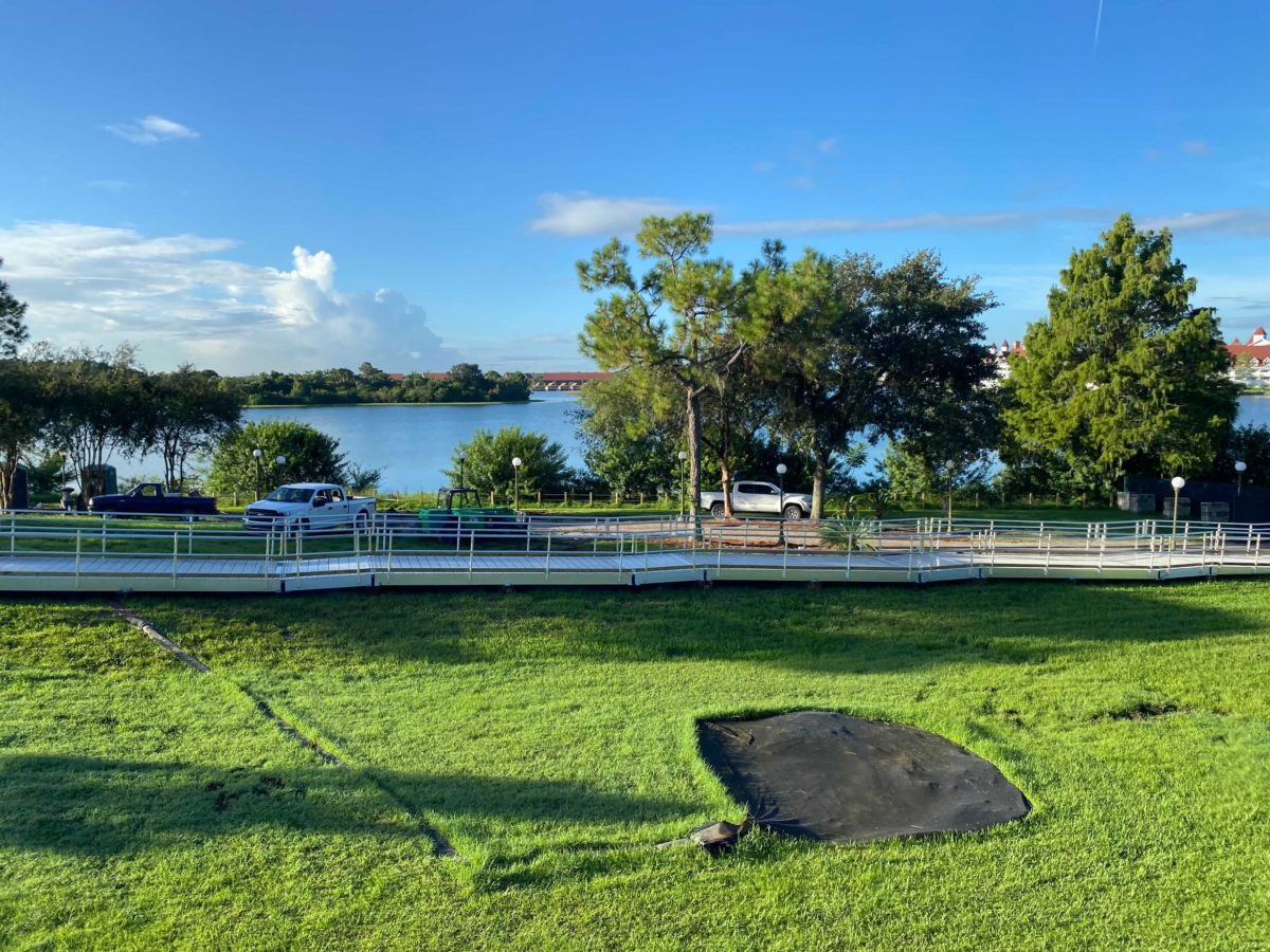 On the Grand Floridian side of the bridge, lampposts still need to be installed, but the bases are in place.