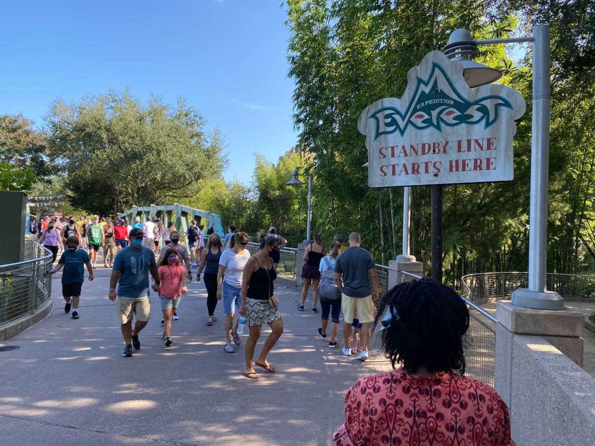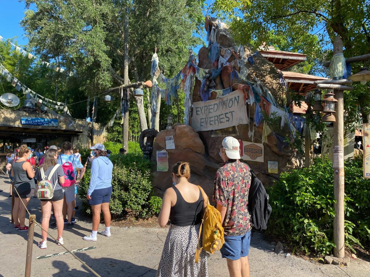 Expedition Everest’s queue crossed the nearby bridge.
