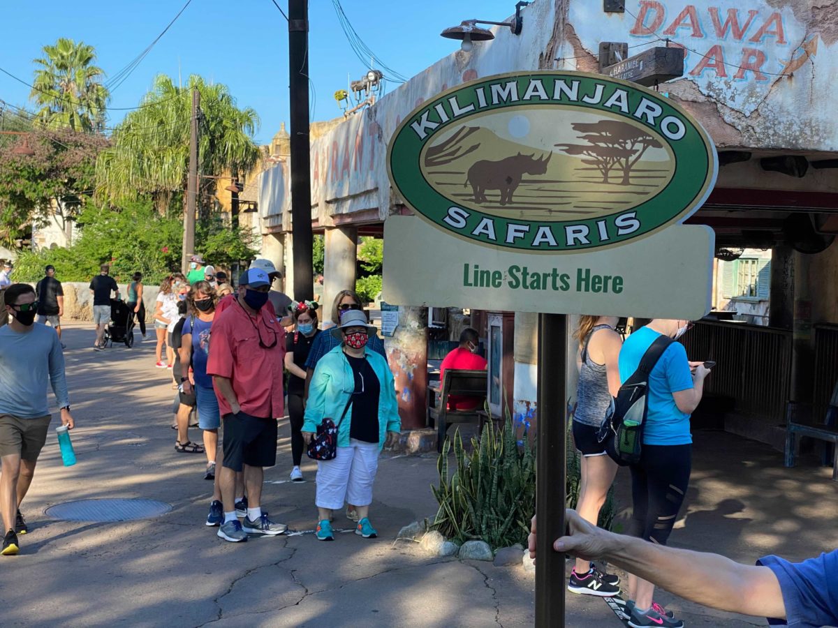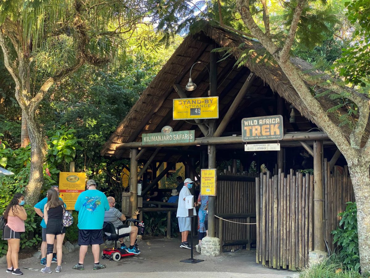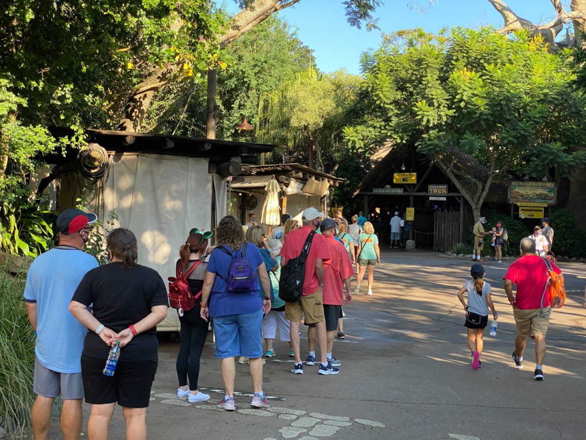 The line for Kilimanjaro Safaris almost reached the Festival of the Lion King theatre.