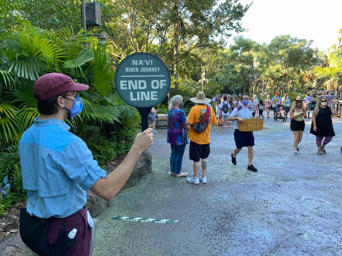 The wait time for Na’vi River Journey was 45 minutes and the line ran out of the queue area.