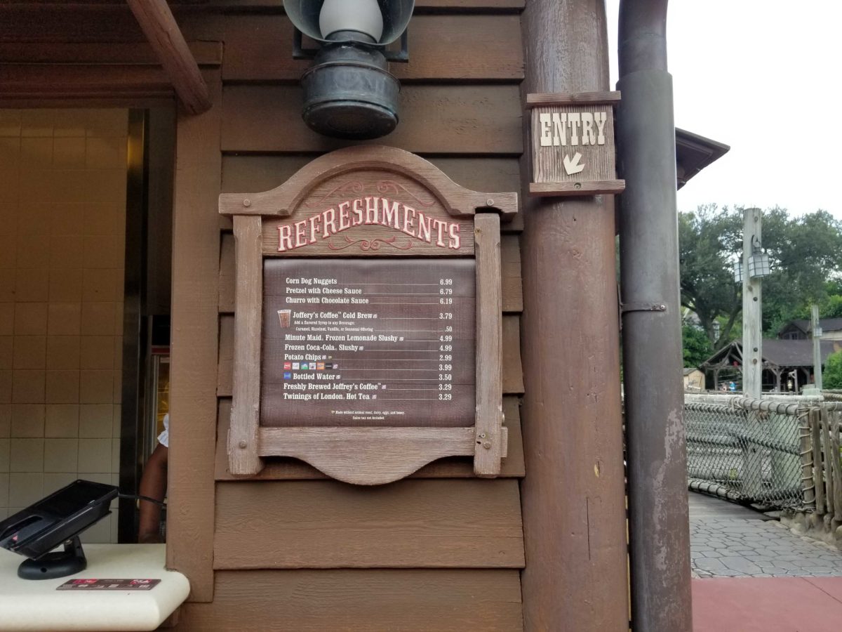 The menu has changed slightly to serve some simpler snack items, including corn dog nuggets, pretzels with cheese sauce, and churros with chocolate sauce. (In a similar move to Gaston’s Tavern, this is to provide guests with the popular corn dog nuggets while Casey’s Corner remains closed.) And if you’re in need of caffeine while on this side of the park, they also have Joffrey’s Coffee Cold Brew.
