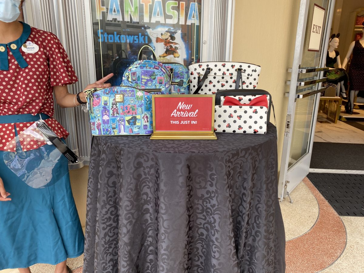 Just outside, a new display was set up of the high end designer handbags available in the store, including the newly released and very popular Haunted Mansion Dooney & Bourke handbags. It was nice to see all these lovely pieces getting some love!