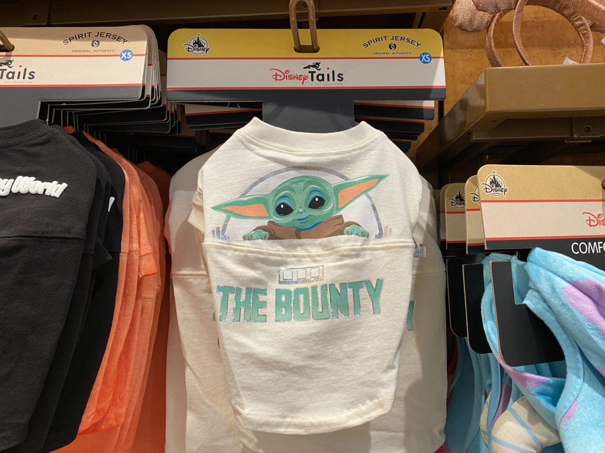 We found some fun new merchandise in the park today. First, we found the newest Spirit Jersey for dogs featuring “The Child” with the words “The Bounty” written underneath. We found this fun addition to the DisneyTails line at The Darkroom, and it retails for $36.99.