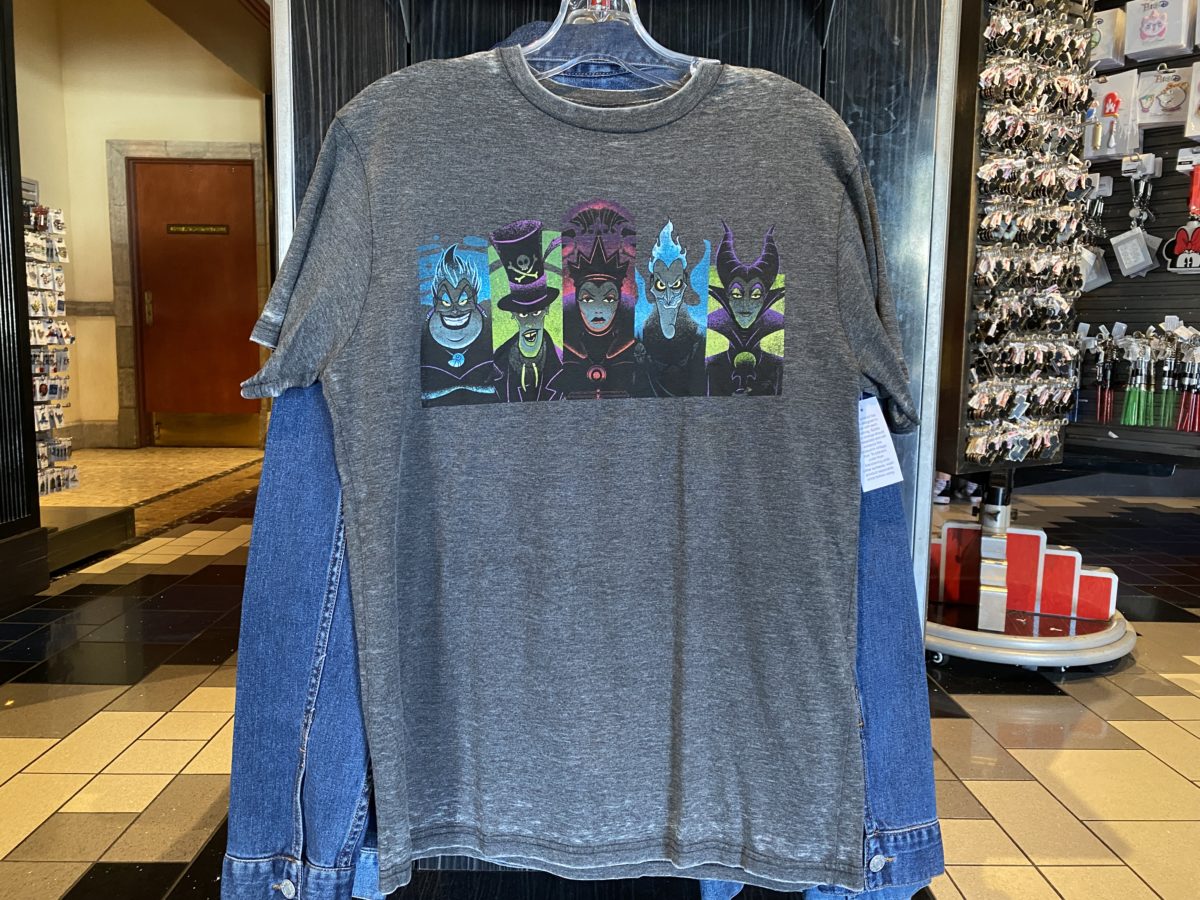 Next we found this deliciously evil Villains acid washed t-shirt for adults featuring the five popular Villains.