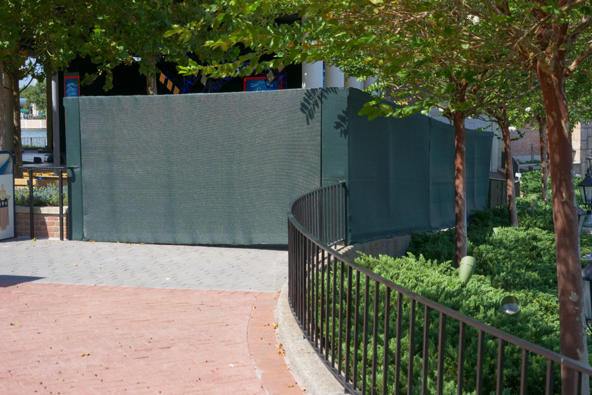 Despite the lack of a push to open the France Pavilion expansion this year, other small projects are getting attention. This small area of the America Gardens Theater has been walled off for work.